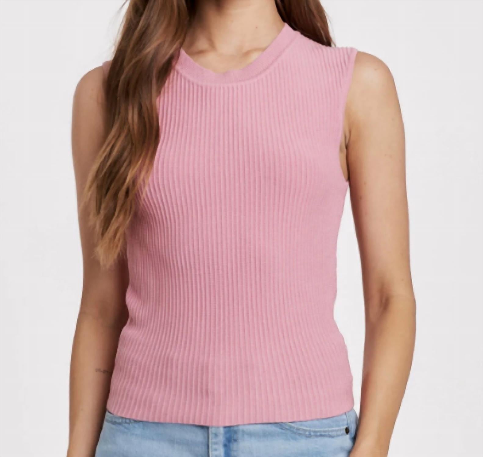 This classic tank top is perfect for layering and cute enough to wear on its own. Elevate your summer wardrobe with the Stirling Sleeveless top by Another Love, a delightful piece in playful Dewy Iris. This women's tank top features a ribbed, striped design and a classic crew neckline. It is made with a convenient pull-on closure for easy wear. Care for it is simple with machine washing instructions.