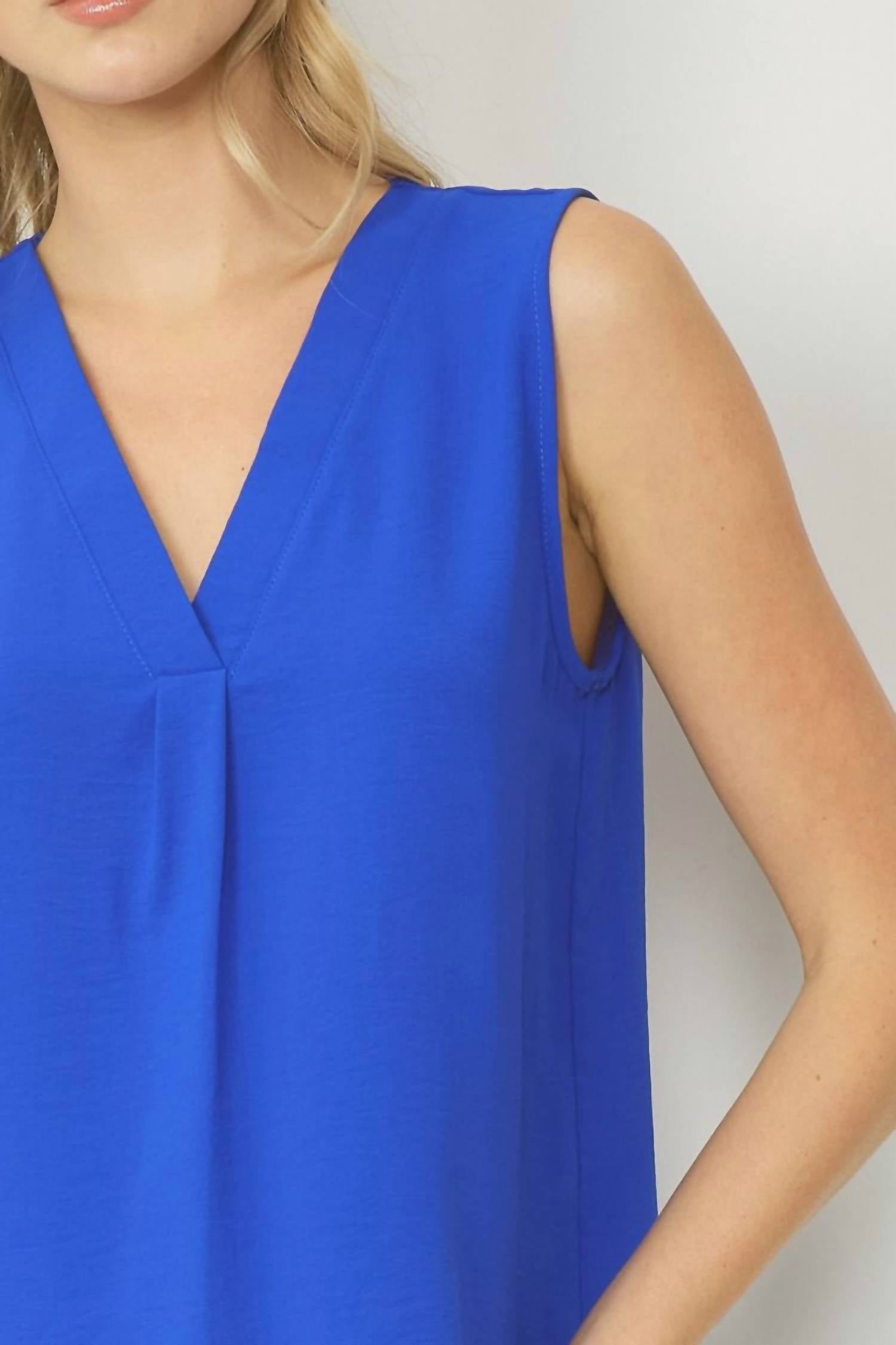 The perfect tank top for those warmer weather seasons. Crafted from 100% Polyester, this non-sheer woven top features a V-neck placket detail and a pull-on closure. With a lightweight feel, it's tailored to provide a comfortable fit with a garment length of 27 inches for a size small. Perfect for a polished look on summer days, this top is both stylish and effortless. Model is 5'10", wearing size Small.