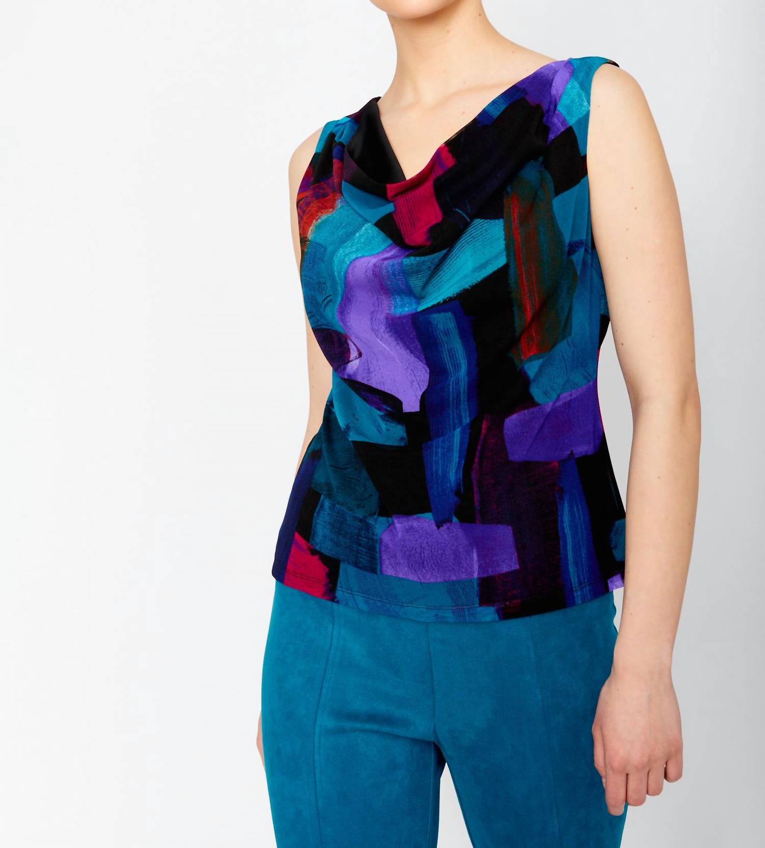 This classic tank top is perfect for layering and cute enough to wear on its own. Introducing the Frank Lyman Abstract Cowl Neck Knit Top, a sleeveless masterpiece that effortlessly combines style and comfort. Crafted with 95% Polyester and 5% Elastane, this hip-length top features a striking abstract pattern in fuchsia and turquoise, tailored for a regular fit. Proudly made in Canada, this pull-on piece offers the ideal blend of casual and artistic appeal for those warm summer days. Care for with ease—hand wash and lay flat to dry. Approximate length: 25 inches (64 cm).