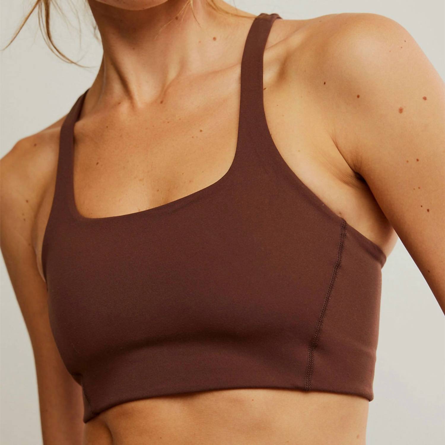 This classic tank top is perfect for layering and cute enough to wear on its own. Introducing the Never Better Square Neck Sports Bra by Free People, a sleek choice for workouts or casual wear in a rich Cocoa color. This athletic piece is sleeveless and crafted from a buttery blend of 79% Polyamide and 21% Elastane, offering a soft, stretchy, and breathable feel. Its pull-on design features a supportive underband, square neckline, V-shaped back, and seam detailing. Care is simple: machine wash cold. Measurements for size small: Bust 28.5", Length 6.75".