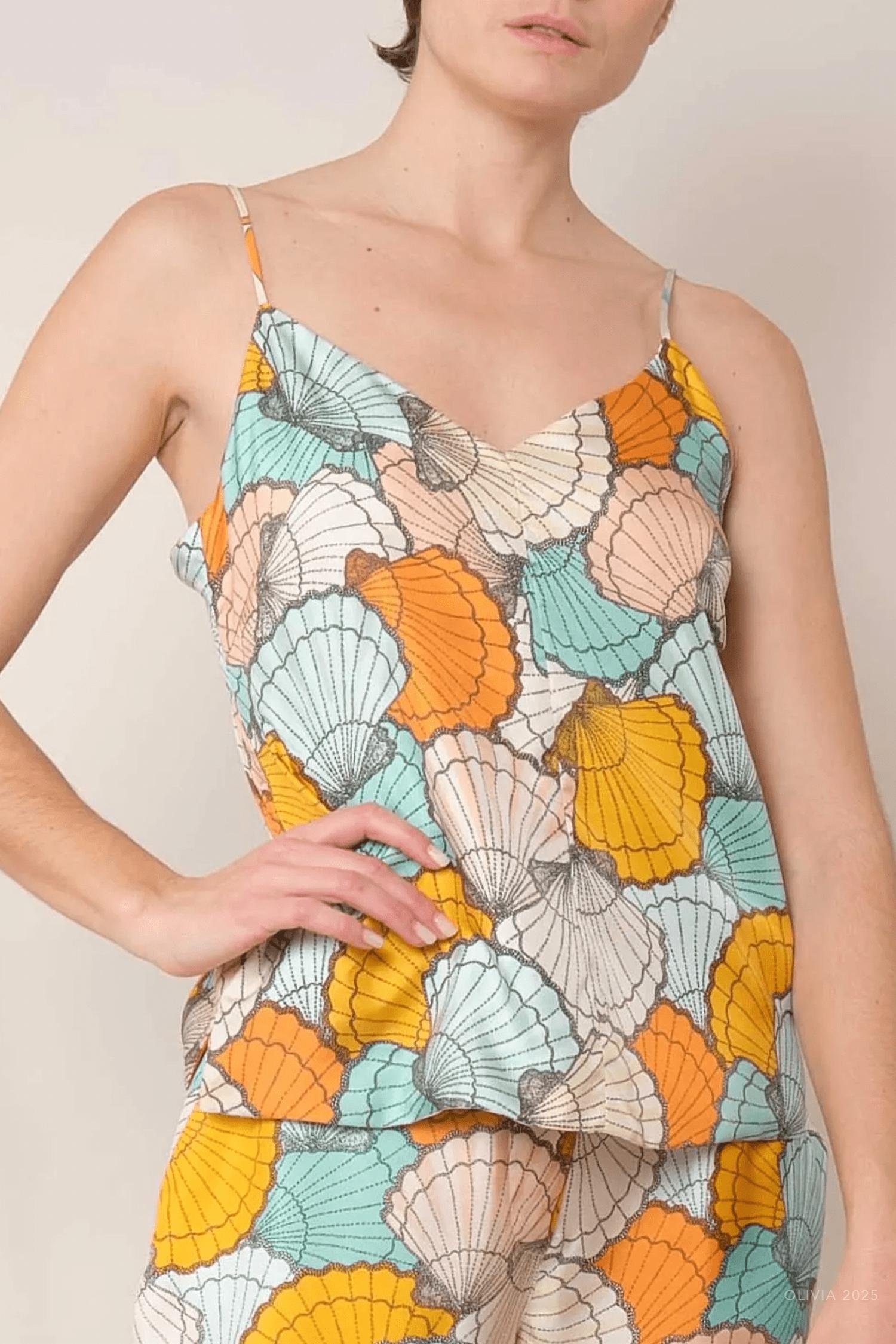 The perfect tank top for those warmer weather seasons. Introducing the Fragola Top by La Prestic Ouiston, a luxurious piece perfect for spring. This tank top showcases spaghetti straps and a V-neckline, all crafted in 100% silk twill for an elegant feel. Made in Europe, this fully reversible top features a unique Mix La Sunset Sky pattern. Pull on. Dry clean only.