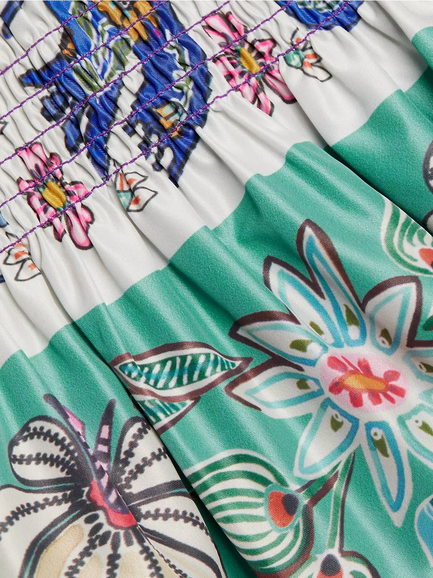 This classic tank top is perfect for layering and cute enough to wear on its own. This Tank Top features a fitted smocked bodice and a mock funnel neck for an elegant touch. Crafted from 100% polyester, it showcases a tropical-inspired print and includes a center back invisible zipper, making it perfect for both casual and dressy occasions.