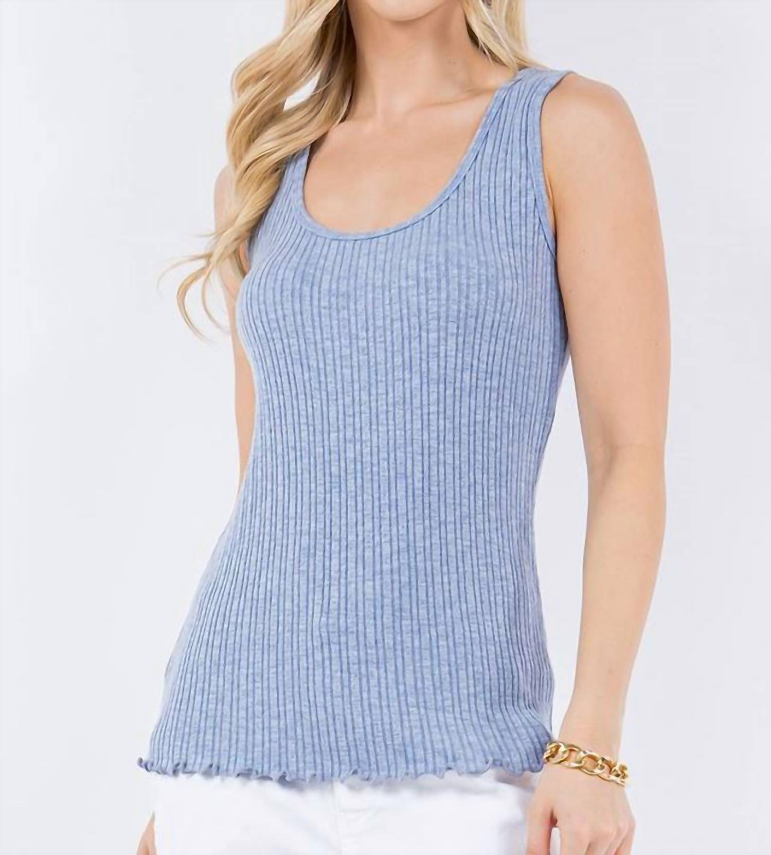 This stretch rib tank top offers a comfortable, close-to-the-body fit with a classic scoop neckline and wide shoulder straps for added support. Made from soft, flexible fabric, it moves with you throughout the day. Finished with a delicate merrow edge hem, it’s a versatile essential perfect for layering or wearing on its own. Care instructions include machine washing and laying flat to dry.