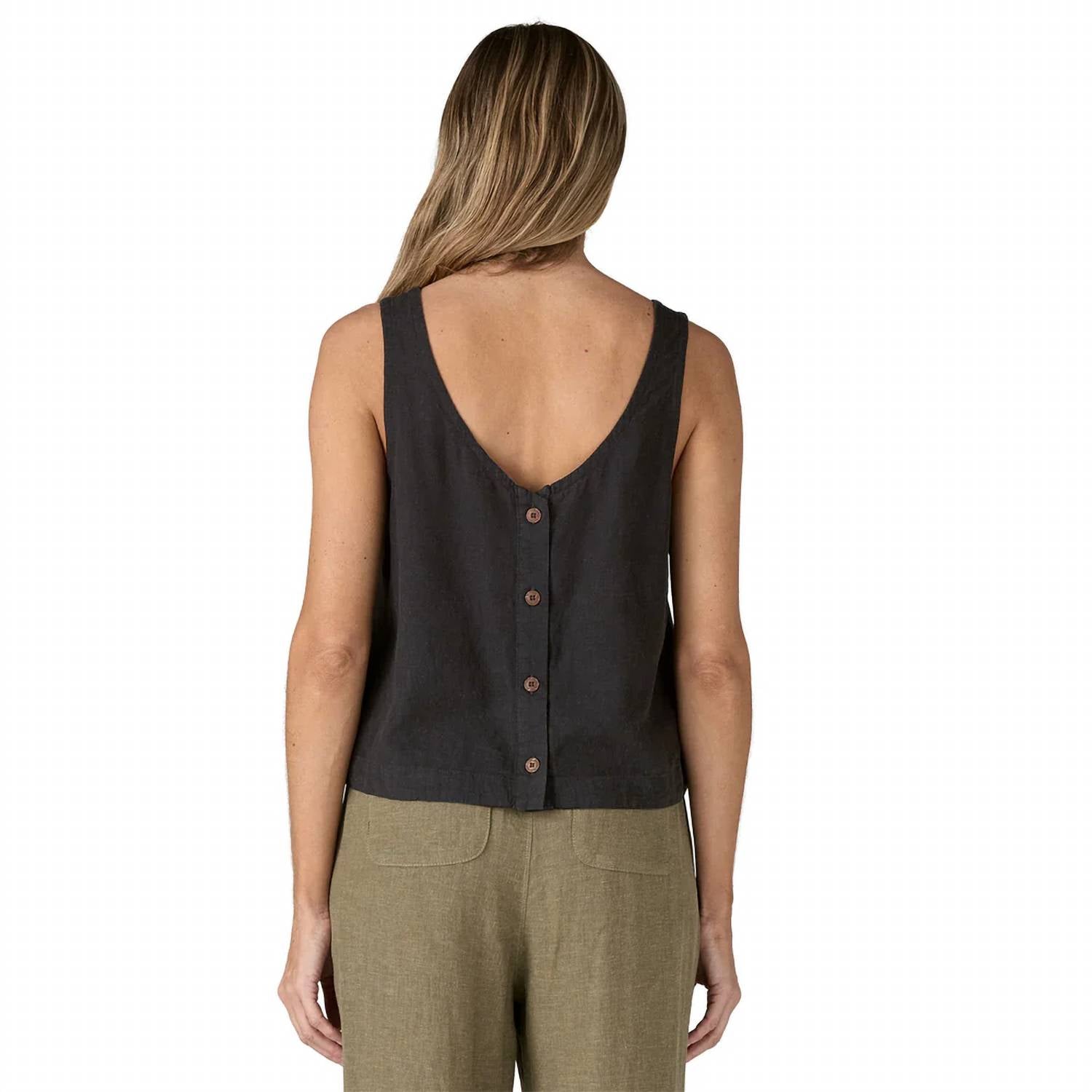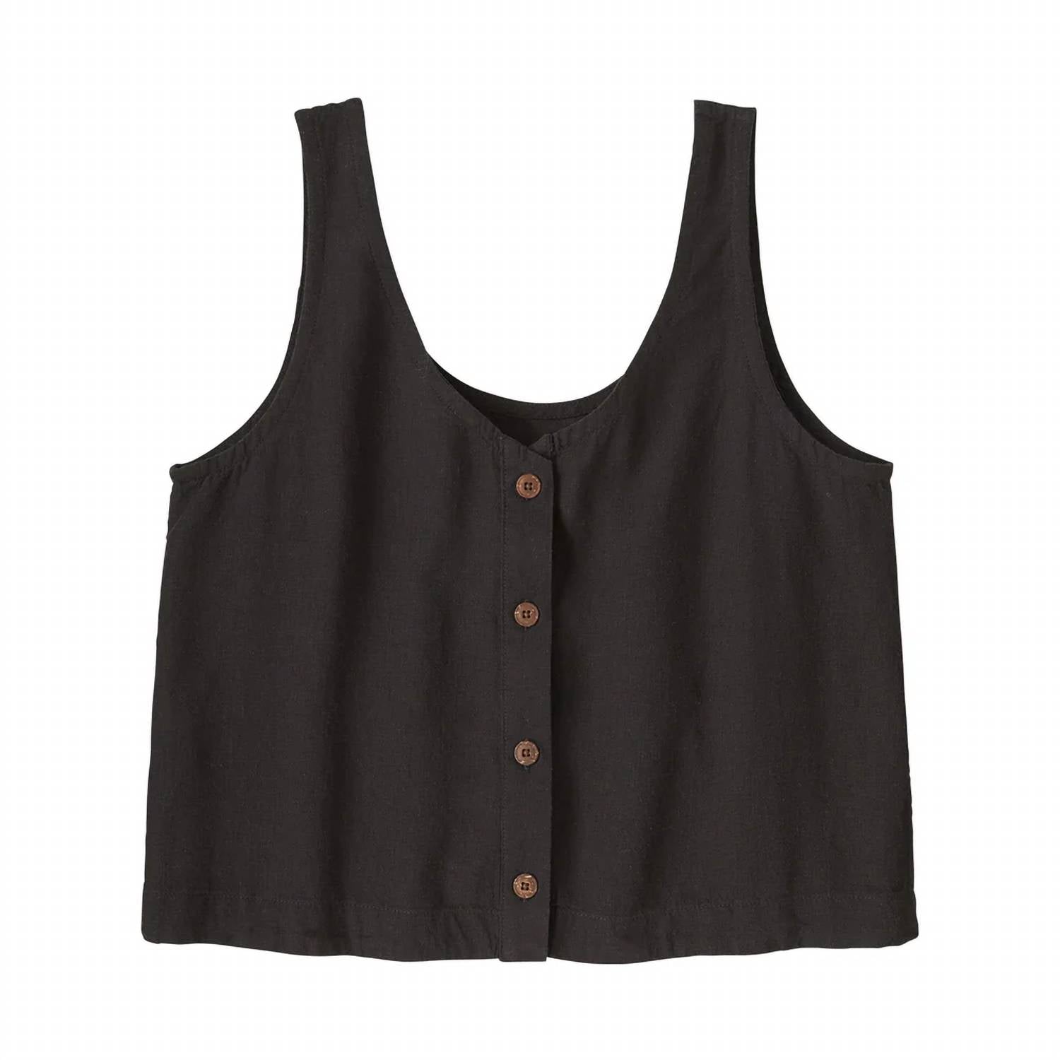 This classic tank top is perfect for layering and cute enough to wear on its own. Elevate your summer wardrobe with the Garden Island Top by Patagonia, designed for both style and comfort. This sleeveless piece features a reversible design with a scoop neck on one side and a V-neck on the other, complete with button detailing. Crafted from a lightweight blend of 55% hemp and 45% TENCEL lyocell, it offers a breathable experience ideal for hot-weather conditions. Closure: Button closure. Care instructions: Machine wash warm, do not bleach, tumble dry low, warm iron. Made in a Fair Trade Certified factory.
