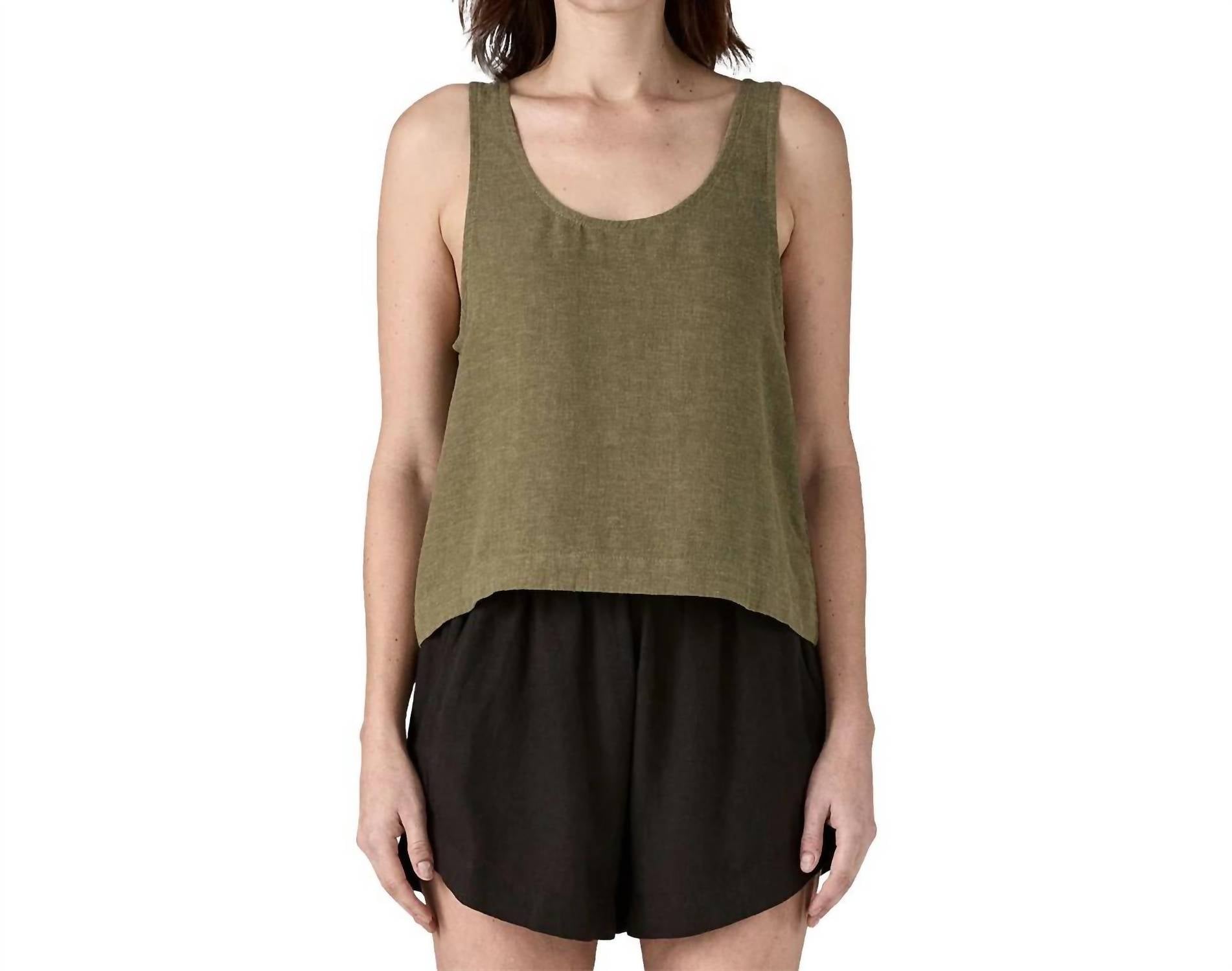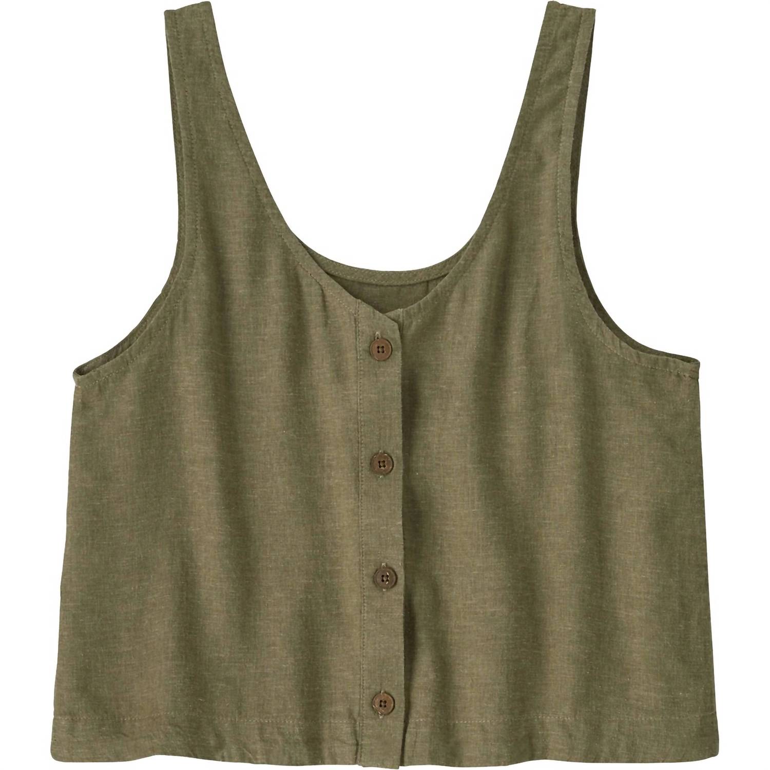 This classic tank top is perfect for layering and cute enough to wear on its own. Elevate your summer wardrobe with the Garden Island Top by Patagonia, designed for both style and comfort. This sleeveless piece features a reversible design with a scoop neck on one side and a V-neck on the other, complete with button detailing. Crafted from a lightweight blend of 55% hemp and 45% TENCEL lyocell, it offers a breathable experience ideal for hot-weather conditions. Closure: Button closure. Care instructions: Machine wash warm, do not bleach, tumble dry low, warm iron. Made in a Fair Trade Certified factory.