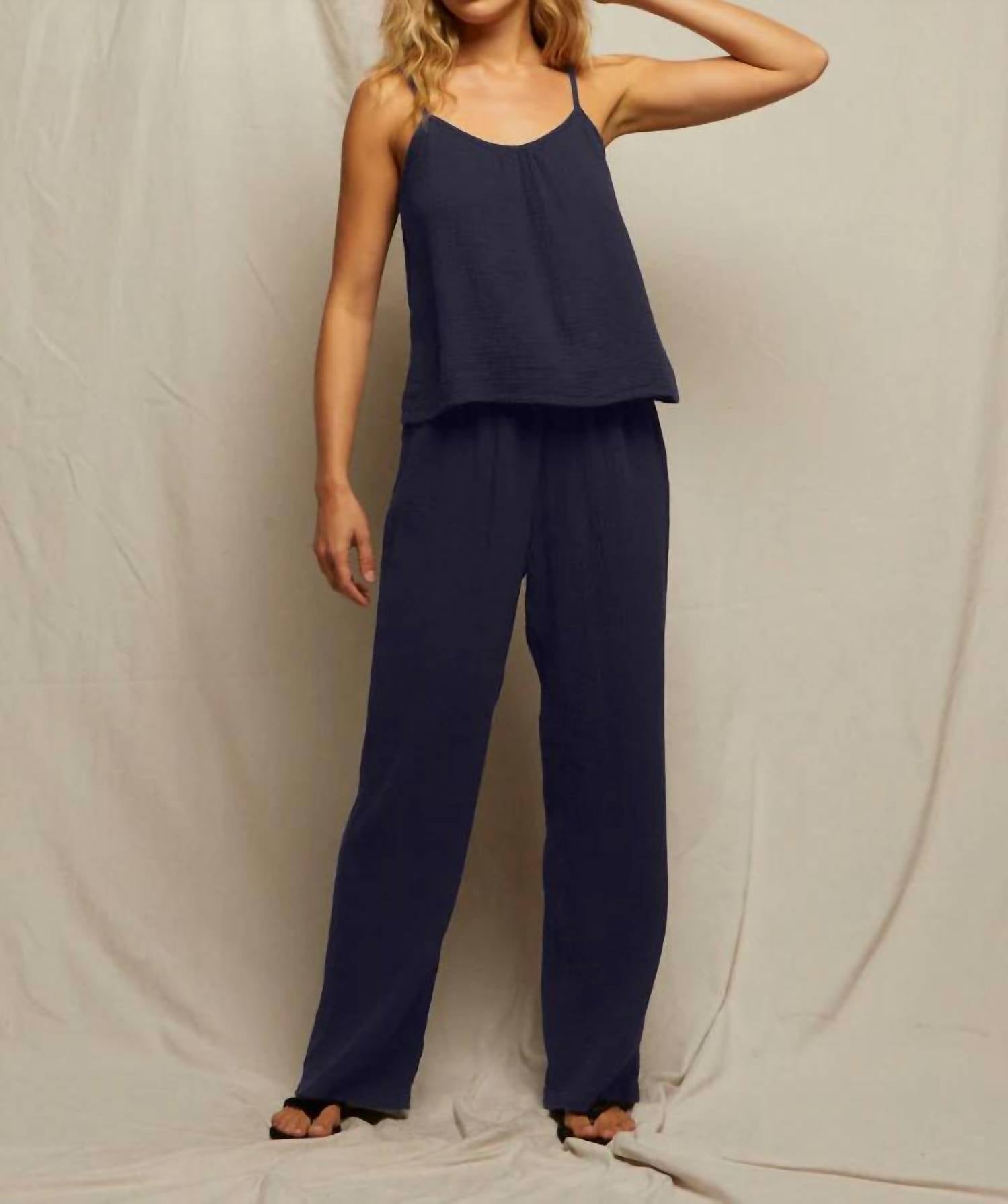 Introducing the Marlo Tank by Perfectwhitetee, an essential for any wardrobe in versatile navy. This sleeveless top features adjustable spaghetti straps and a flattering scoop neck with an A-line cut, designed to drape loosely for a comfortable fit. Crafted from 100% cotton, this tank is ideal for achieving that minimalist look, perfect for summer vacations or casual outings. Closure: Pull-on style. Care: Machine wash cold on a gentle cycle, tumble dry low, and warm iron if needed. Model is 5'9" and wearing a size small.