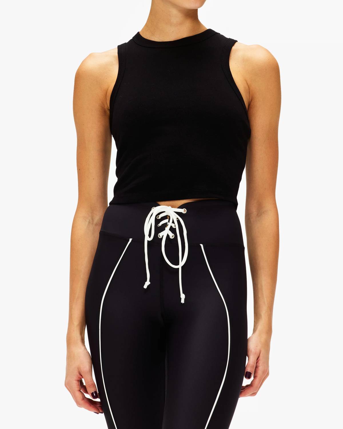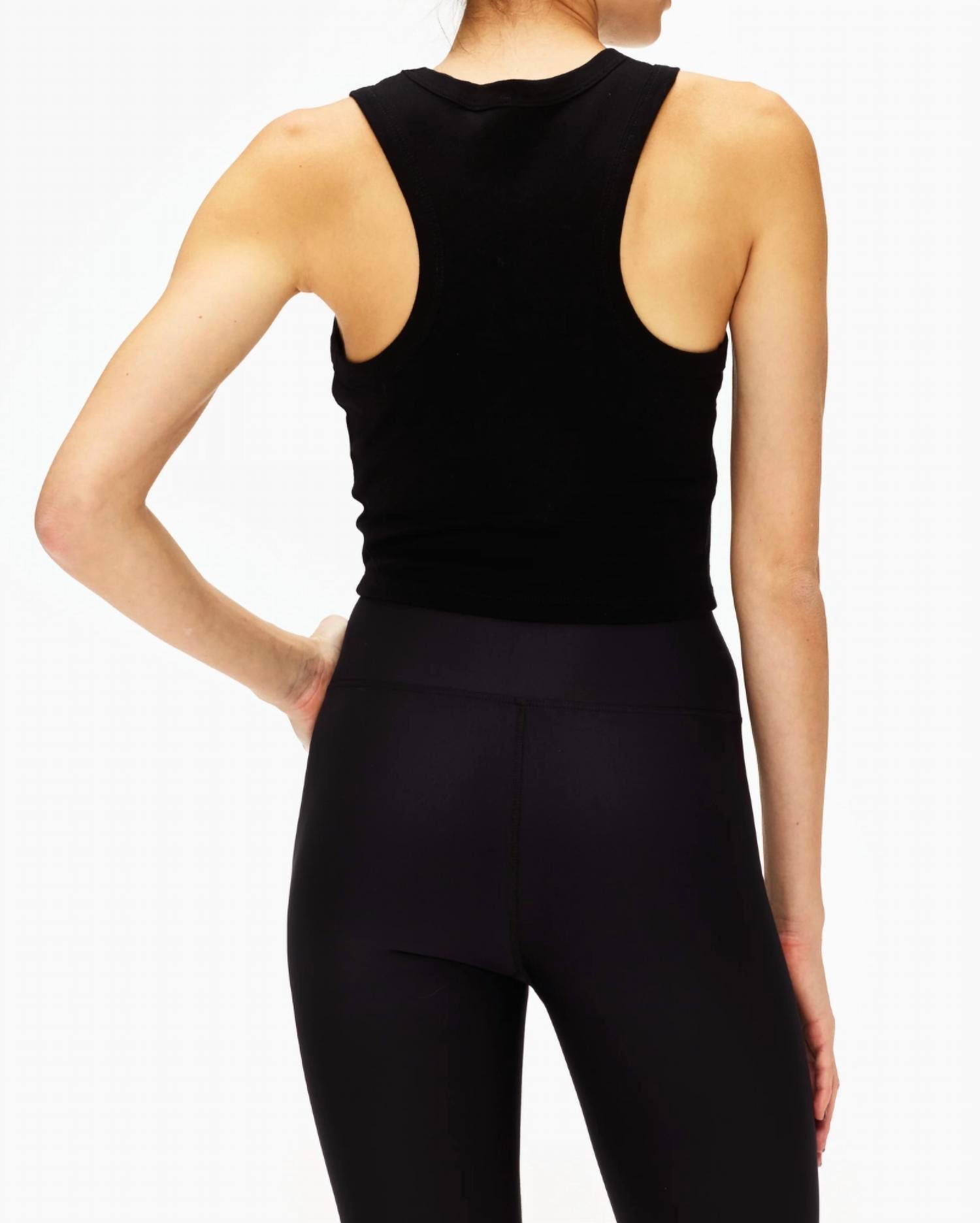 Fit, fabric and functionality. This tank top checks all the boxes. We designed our Racer Crop Tank to be the perfect sporty companion to all our high waisted bottoms. Made in a heavyweight cotton, it holds its structure so you’ll look put-together while still being super comfy and ready to sweat. Also pairs great with jeans for a cute crop top look outside of your workouts. Racer front Sleeveless Cropped length 17 ¼” length 100% Cotton Machine wash cold, lay flat dry Made in USA