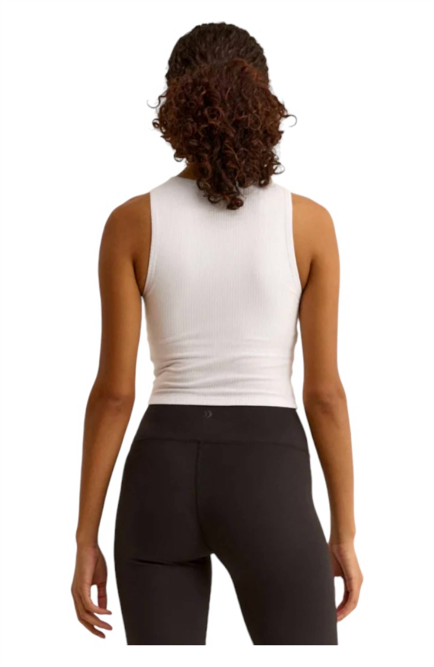 This classic tank top is perfect for layering and cute enough to wear on its own.Fitted. Structured Rib. Shelf bra. Removable pads. High neckline. Medium support. 95% Rayon, 5% Elastane. Machine Wash Cold Gentle Cycle, Lay Flat to Dry or Hang to Dry, Do Not Use Softener.