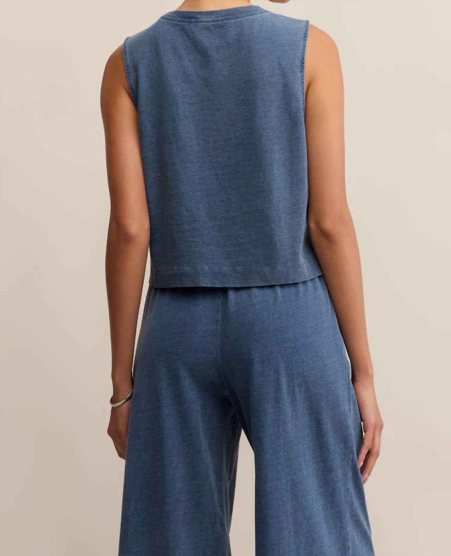 This classic tank top is perfect for layering and cute enough to wear on its own. Embrace effortless style with the Z Supply Sloane Jersey Denim Muscle Tank in Vintage Indigo. This lightweight, sleeveless tank features a classic crew neck and a relaxed fit, perfect for a laid-back summer look. Composed of 100% cotton, it offers a natural, breathable feel with a fashionable mineral wash finish. Designed for convenience, this piece has a pull-on closure and is easy to care for with a machine wash and line dry. The length from shoulder measures 19 inches, making it a versatile addition to any wardrobe.
