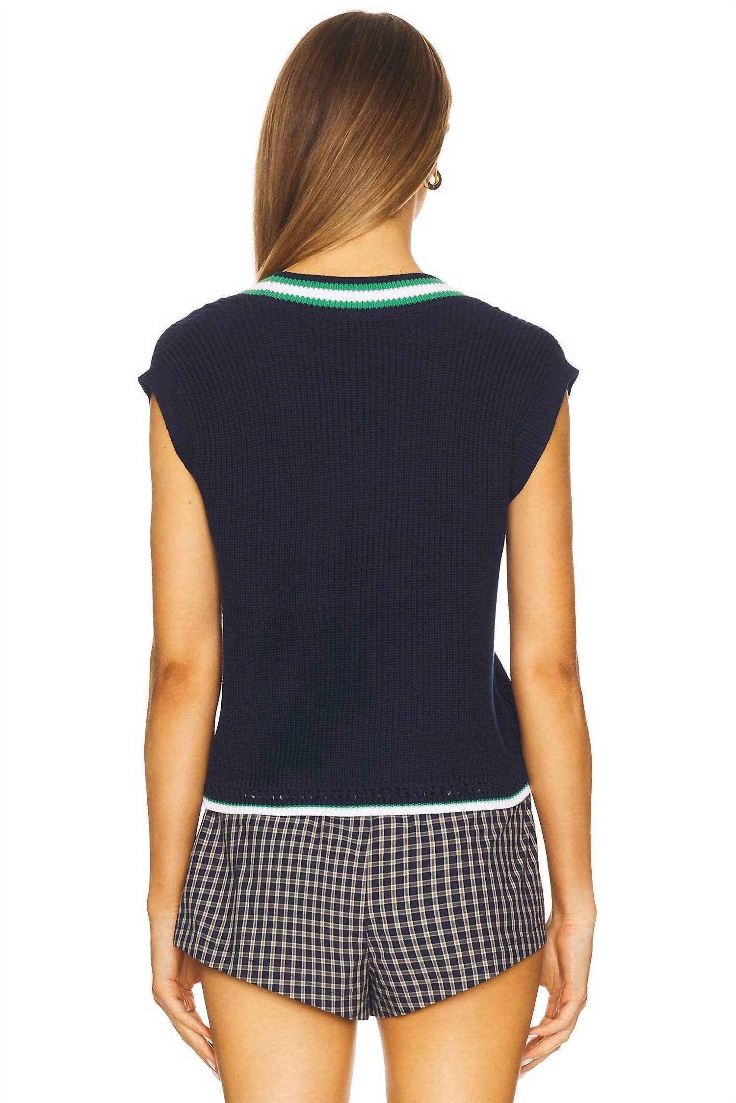 Embrace a varsity-inspired vibe with the Crochet Vest by 525 America, designed in a chic Blue Multi shade. This women's vest features cap sleeves and a textured shaker stitch-knit, with a modern boxy silhouette measuring 20" in length for a relaxed fit. Crafted from breathable 100% cotton, its pull-on design offers ease of wear. Care instructions include machine wash and tumble dry low, making it perfect for minimalist summer looks.