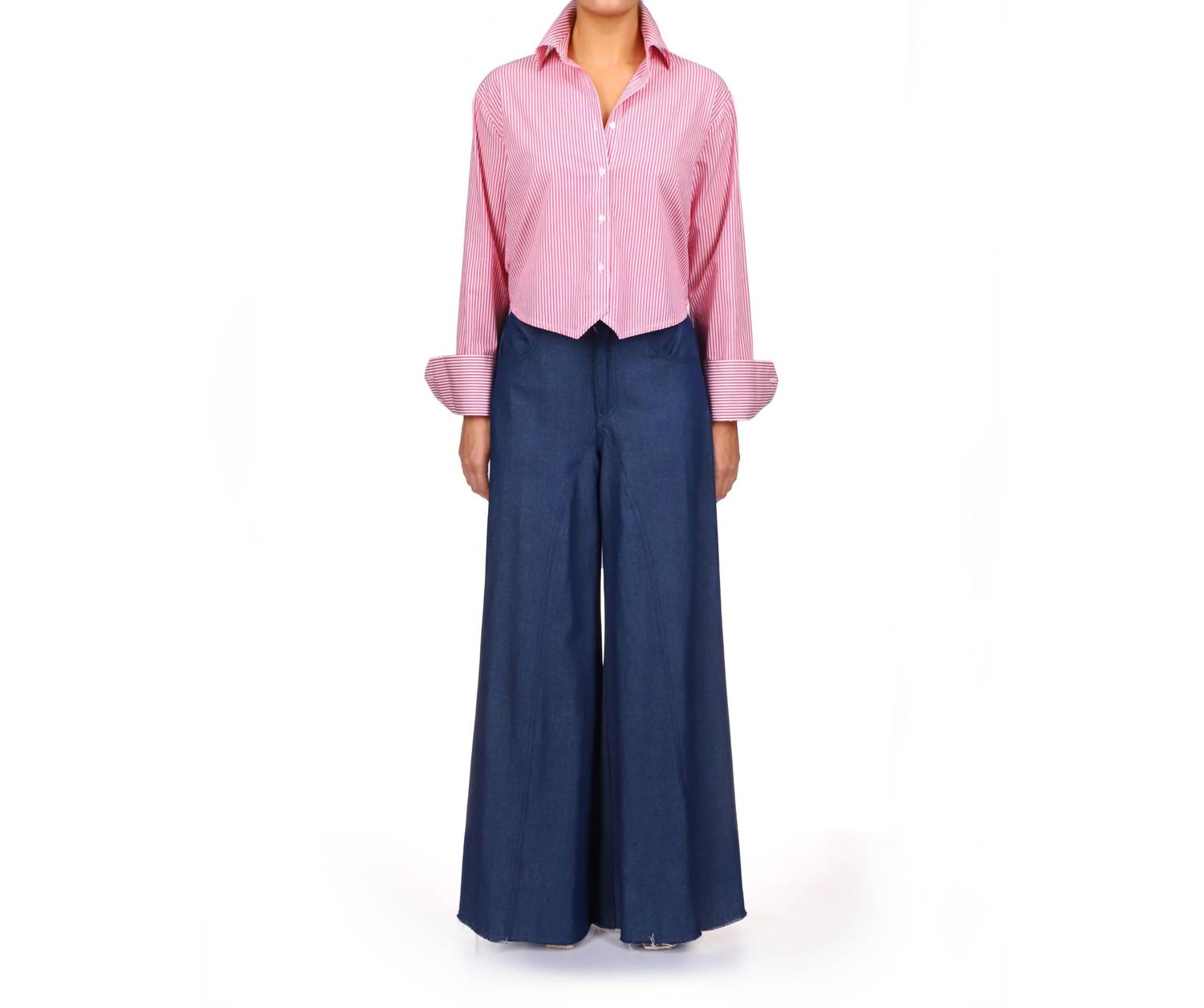 A classic button down shirt that will never go out of style. Introducing the Charlotte Candy Stripes Shirt by A SHIRT THING, a chic addition to your winter wardrobe. This button-down shirt is crafted from high-quality 100% cotton material, featuring stylish long puff sleeves and a spread collar. Imported and available in a striking red yarn-dyed cotton stripe pattern, this shirt perfectly combines fashion and function. Designed with a button closure and a relaxed fit, it's ideal for holiday parties and Christmas gatherings.