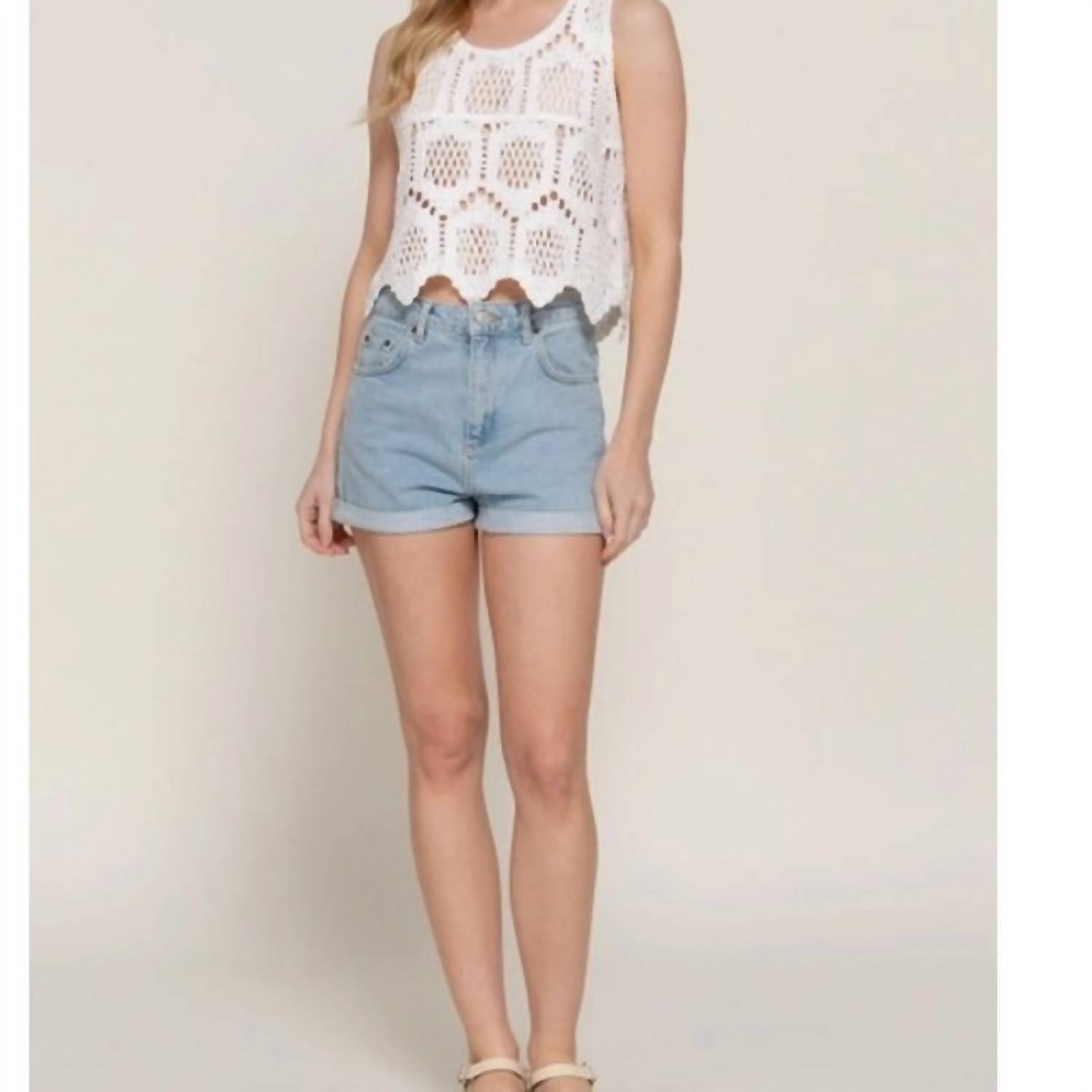 Active Basic - Sleeveless Round Neck Cotton Crochet Crop Tank Top