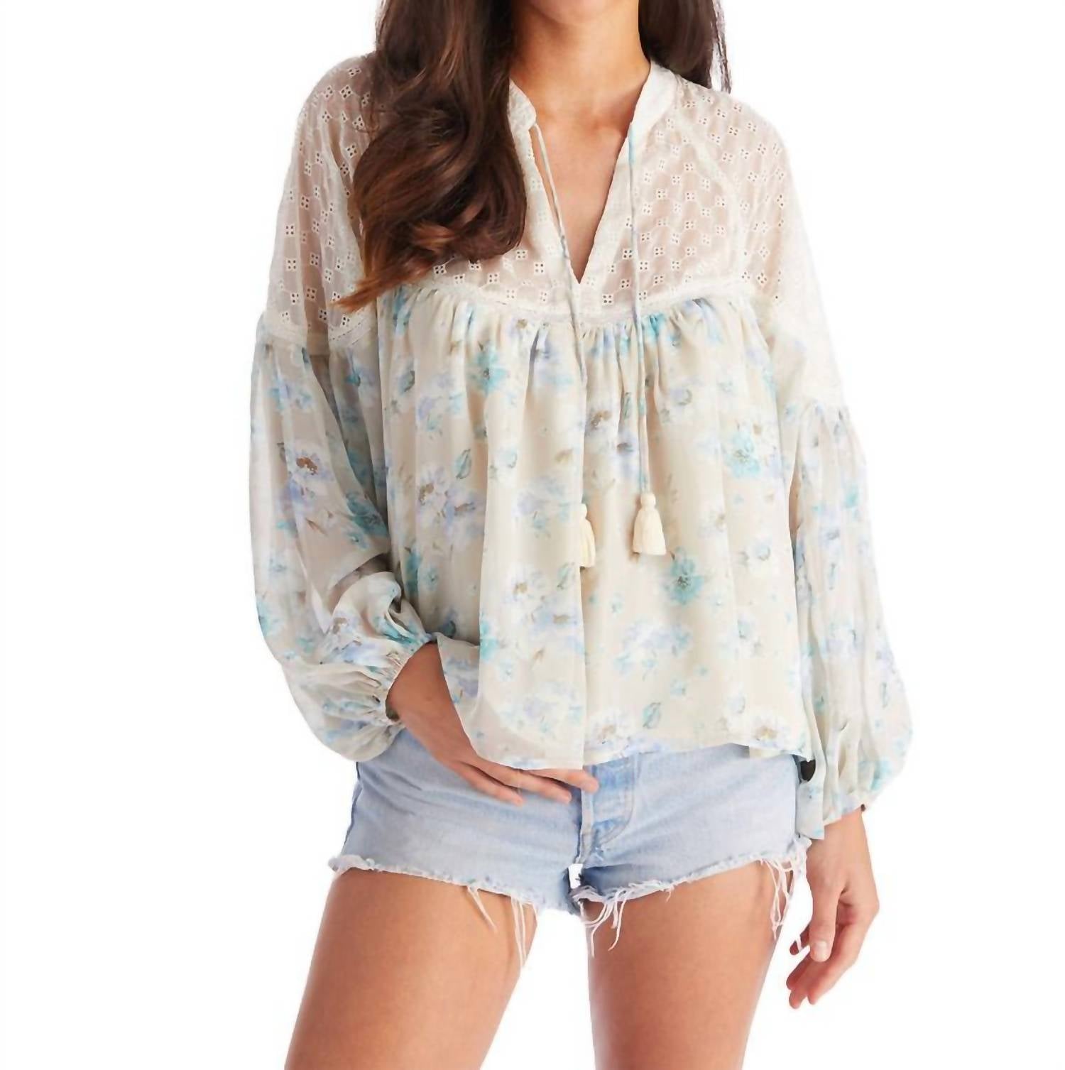 Introducing the Gwyneth Tie Blouse by ALLISON NEW YORK, a stunning piece showcasing a watercolor floral pattern perfect for vacation styling. Featuring long sleeves and a V-neckline, this summer blouse offers an elegant, minimalist look. Closure: Tie closure. Care: Hand wash, line dry.
