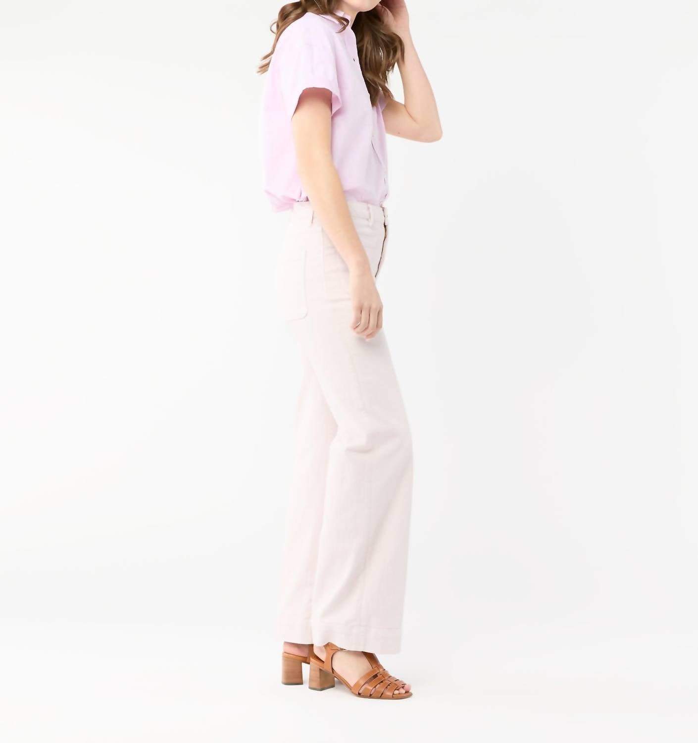 This button down shirt is comfortable yet polished. The Agnes Shirt by Ann Mashburn in Orchid Chambray is a chic vacation essential for women, boasting short sleeves that can be cuffed for a relaxed fit. Crafted from 100% Italian chambray cotton, this button-down features a point collar and Trocas shell buttons, complete with a full front placket and a convenient chest pocket. Proudly made in Honduras, this solid-patterned shirt embodies minimalist spring style. Care includes machine washing, hanging to dry, and medium ironing.