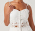 Introducing the Kiya Linen Embroidered Top by ASTR, a chic addition to your summer wardrobe. This sleeveless top showcases a textured linen fabric in a fresh white hue, accented with scallop trims. Made in China, it features a smocked back and a flattering button front closure. Composition: 100% Linen, with a lining of 100% Rayon. Care: Dry clean only. Ideal for vacations, this top offers a slightly cropped fit with adjustable self-tie straps, floral embroidery, and a sweetheart neckline.