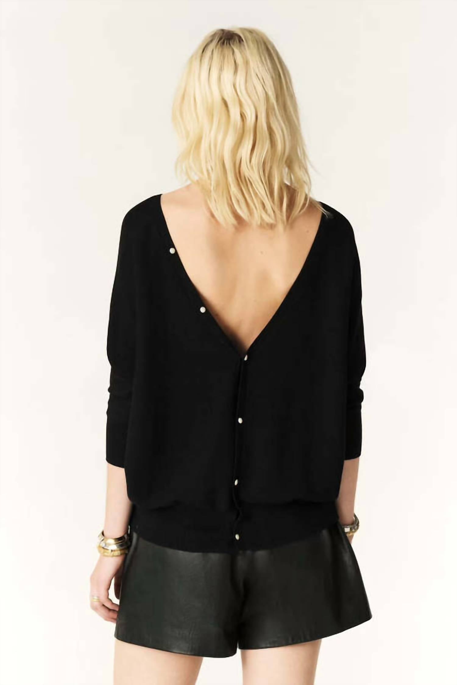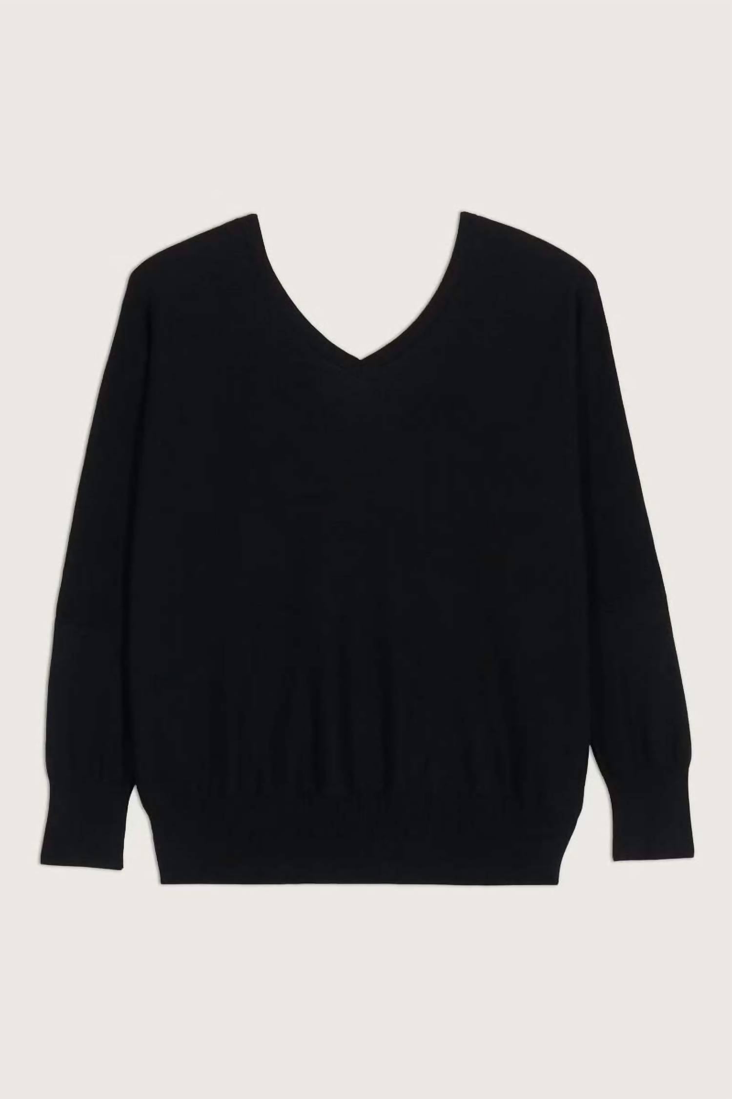 Great fit, cute design, soft fabric. You'll love everything about this long sleeve tee. Experience the allure of the ba&sh Jumper Elsy Long Sleeve Sweater in Noir, combining seductive elegance with comfort. Crafted from a luxurious cotton blend, it boasts batwing sleeves and an open back, enhanced by a clever button closure for a cardigan-like effect. This soft, flowing piece is made with 50% cotton and 50% modal, highlighting the brand's commitment to using organic cotton and ethically sourced wool. Ideal for a spring vacation, it's designed for a solid, versatile women's wardrobe. Care instructions recommend hand washing for optimal maintenance.