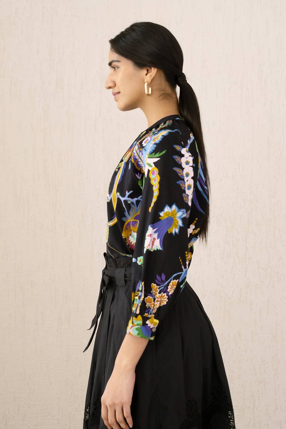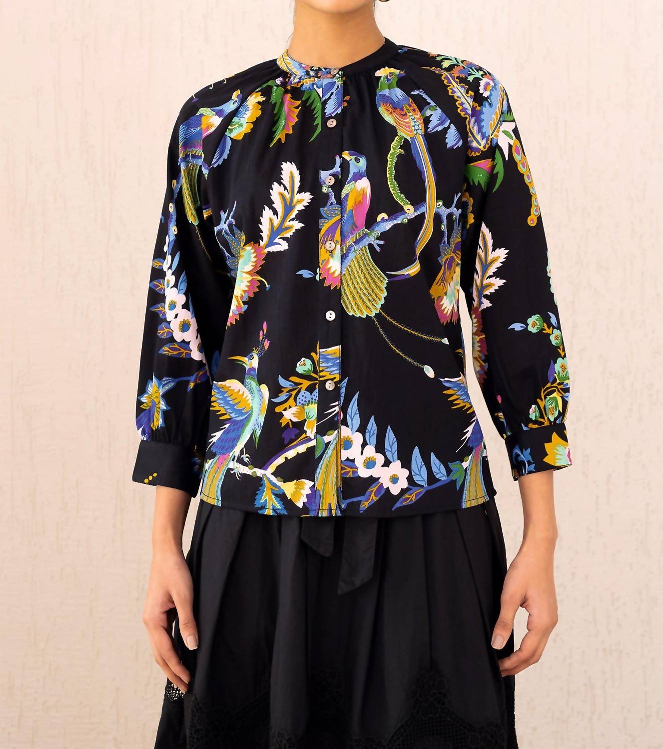 Embrace sophisticated style with the Leonie Long Sleeve Top by BANJANAN, perfect for both fall and winter seasons. Featuring a slight Mandarin collar and a button closure, this top is highlighted by its patterned design and slightly wider cuffs for a chic boho vibe. Closure: Button closure. Care: Line dry. Ideal for holiday parties, this versatile top will keep you looking polished and stylish.