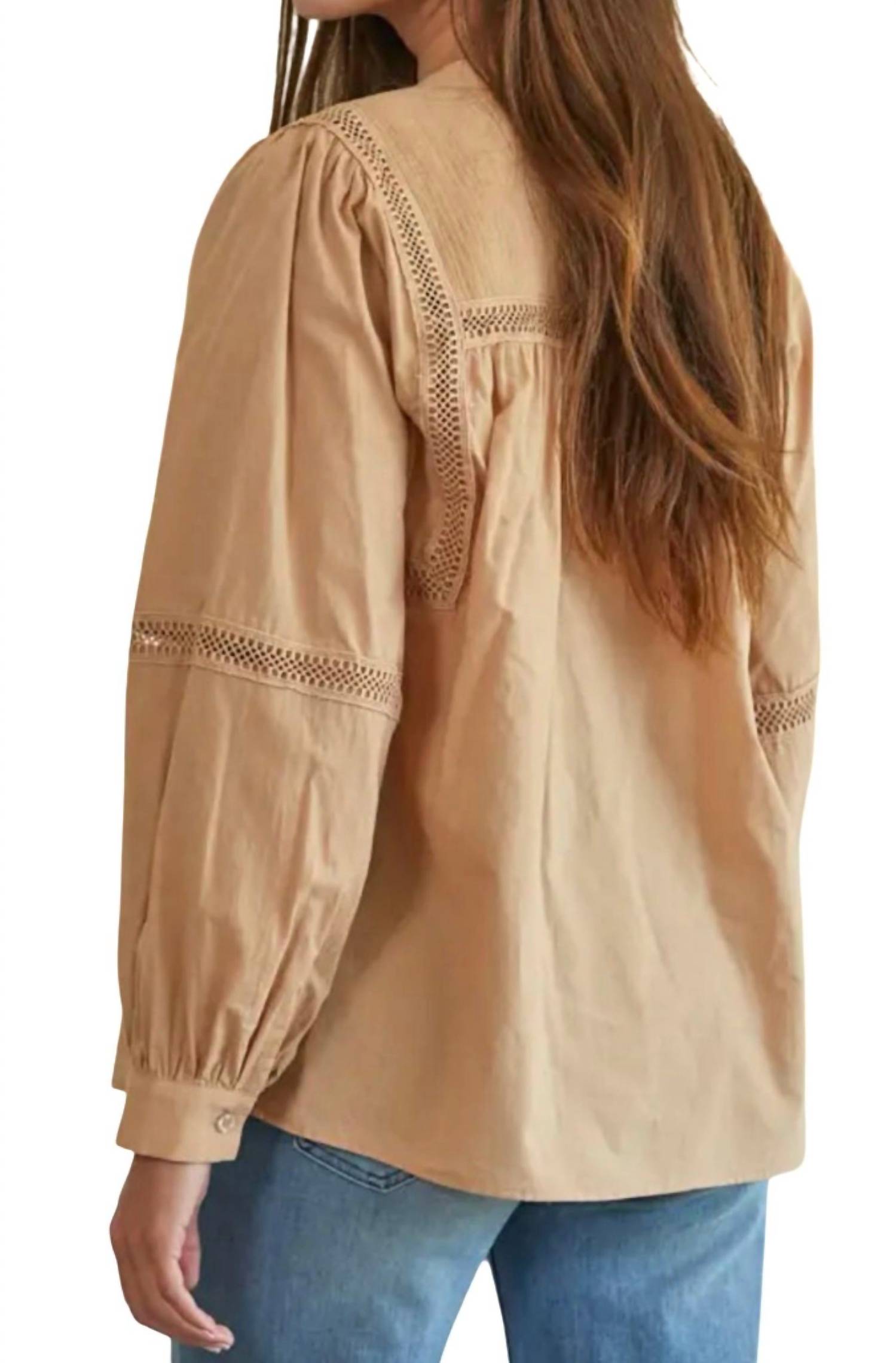A versatile blouse that works from desk to dinner! Discover the Zayley Shirt by By Together, perfect for embracing a bohemian and casual look. This woven cotton piece features long sleeves and a chic round neckline adorned with lace and pleat details. The button closure ensures ease and style for any occasion. Care instructions include machine wash. The shirt arrives in a charming dusty salmon hue, ideal for women seeking solid pattern elegance.