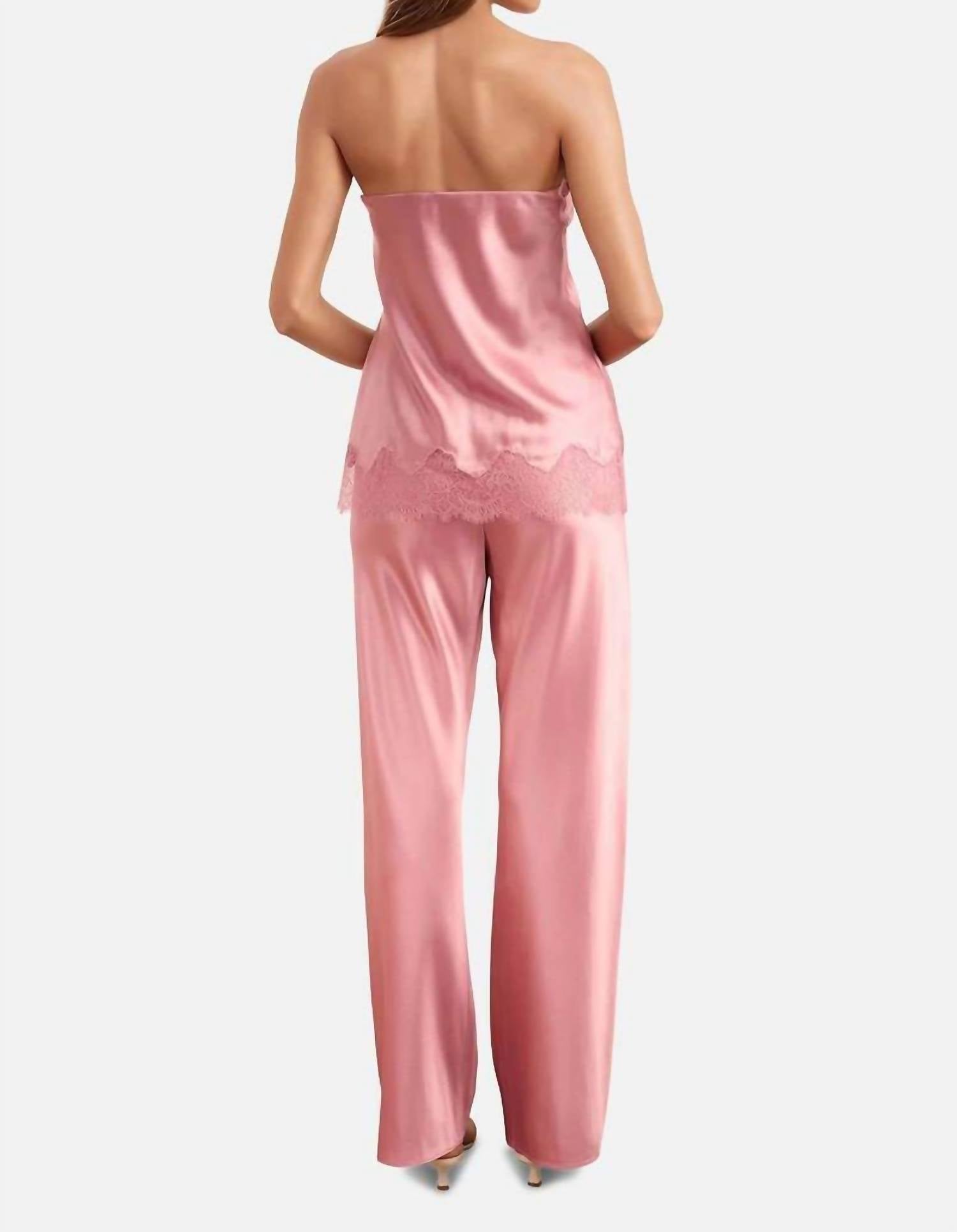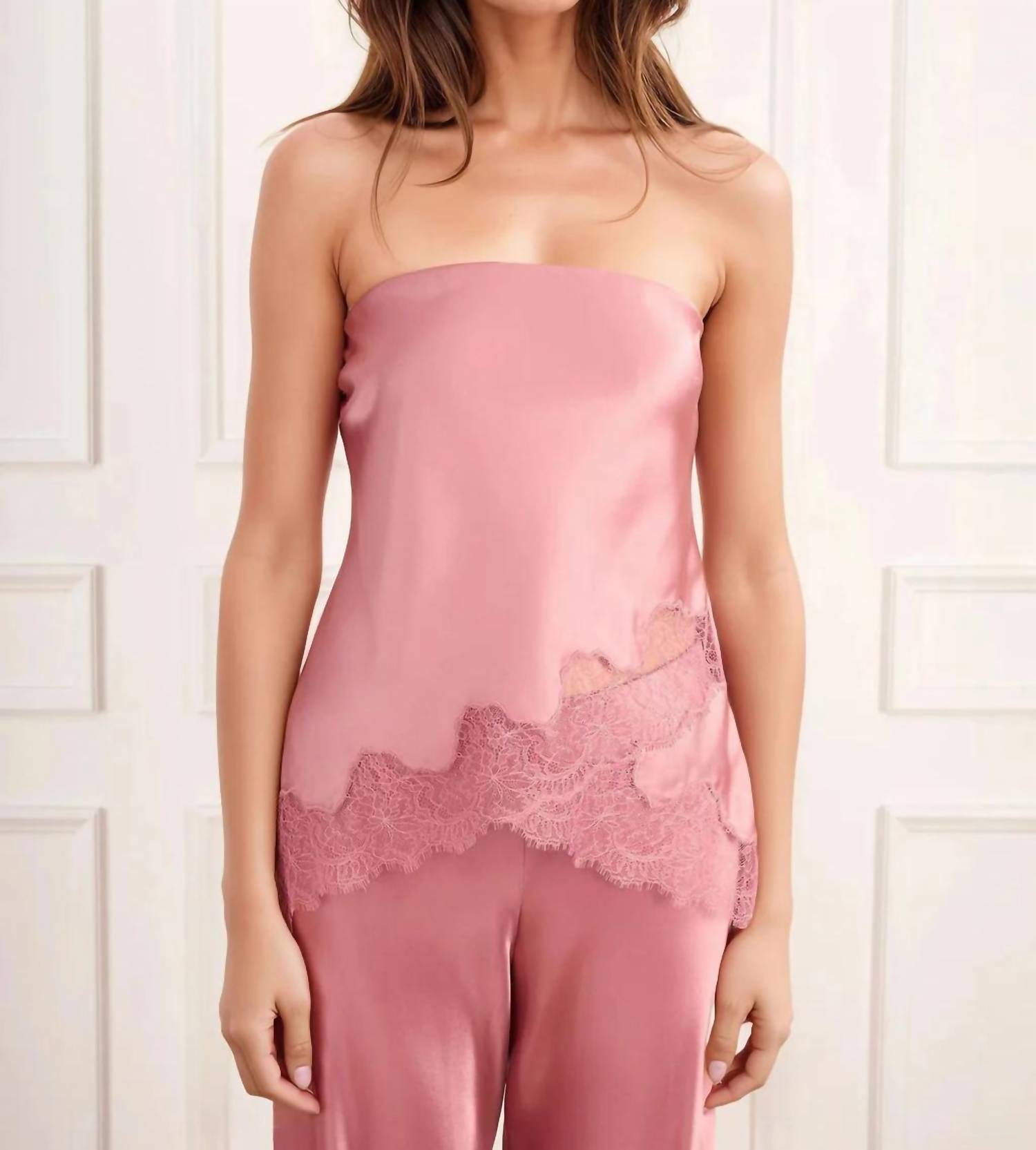 Embrace elegance this summer with the Odessa Strapless Camisole by Cami NYC in a captivating elderberry hue. Skillfully crafted from 100% silk, this camisole features an asymmetrical lace hem and a sheer lace insert that creates a faux cross-over detail. The hidden interior elastic construction keeps it securely in place, offering a seamless pull-on experience. Care for this luxurious garment by dry cleaning and steaming only.