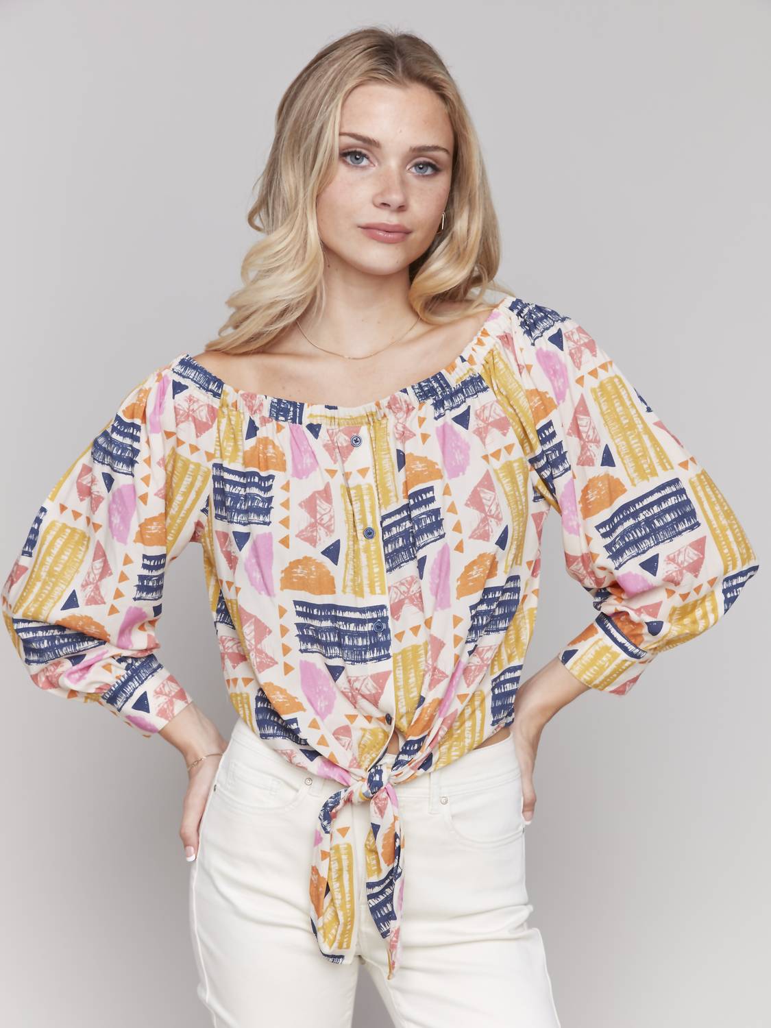 Charlie B - Printed off shoulder blouse with knot