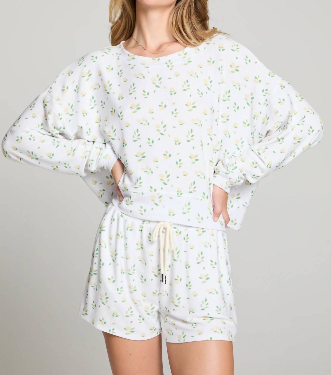 Great fit, cute design, soft fabric. You'll love everything about this long sleeve tee. Infuse your wardrobe with a zest of style with the Allover Lemons Long Sleeve Top by Chaser. This piece features long sleeves and a charming Tuscan motif in a flattering boxy, cropped fit. Crafted from 49% Polyester, 46% Rayon, and 5% Spandex, this top offers comfort and style in a fresh floral pattern. Designed with a convenient pull-on closure, it's the perfect addition for a boho chic Thanksgiving or any spring occasion. Model is 5'9" and wearing a size small.