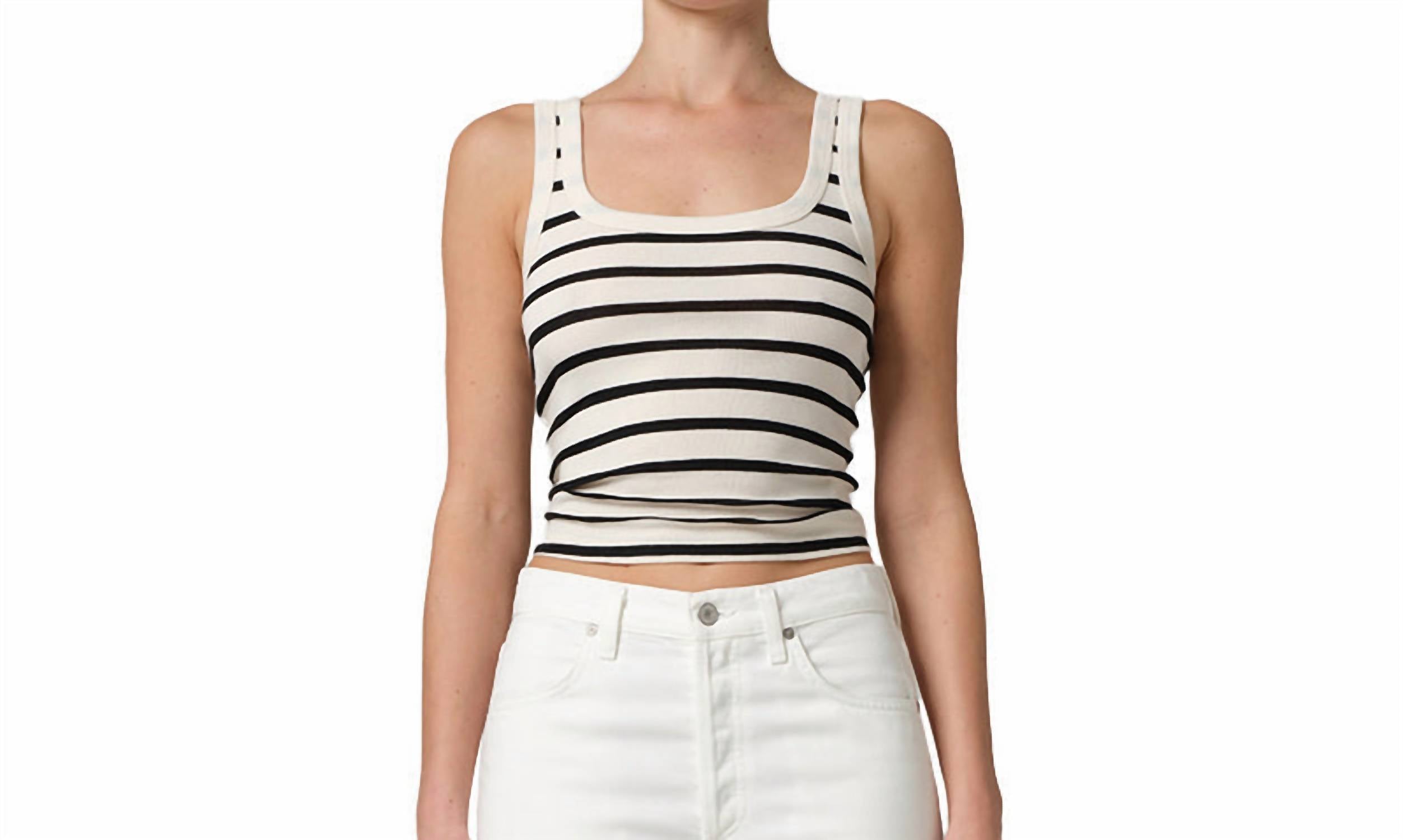 Fit, fabric and functionality. This tank top checks all the boxes. The Faye Tank by Citizens of Humanity is a staple for any wardrobe, crafted for effortless style with its sleeveless design and made from an ultra-lightweight cotton blend. This tank features a flattering scoop neck and a slightly cropped fit at 19.5 inches, making it versatile for high-rise jeans or skirts. 80% Cotton, 20% Polyester. Made in the USA from imported materials. Machine wash cold. Pull on. Model is 5'10" and wears a size small.