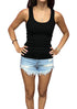 Meet the Renton Racerback Tank by CROWN JEWEL, an essential piece for every wardrobe, crafted in a sleek black color. This sleeveless top boasts a scoop neck with a distinctive raw edge crewneck and racerback design. Made from a soft cotton blend, it promises the perfect amount of stretch with its DNA spandex 2x1 Luxe Rib fabric. Proudly 100% made in the USA and pre-laundered with a special garment dye process, it offers pull-on closure and requires machine washing and tumble drying.
