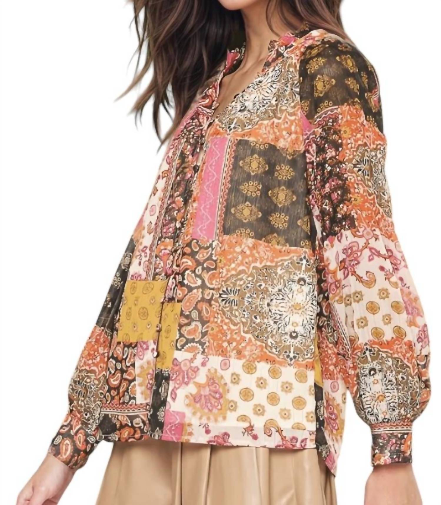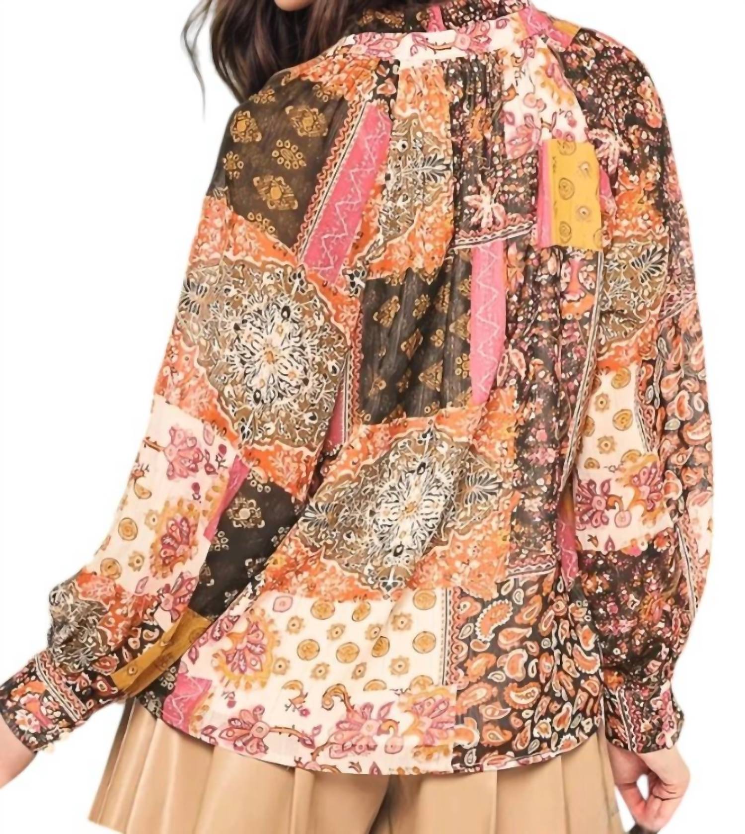 Entro - Daphne Patchwork Print Chiffon Long-sleeve Top