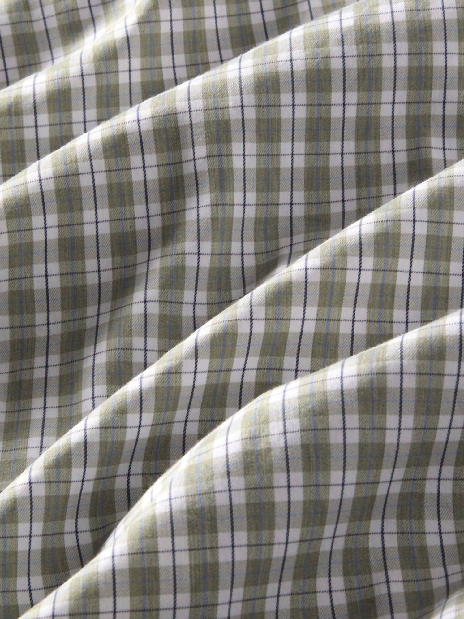 Meet the Men's Movement Button-up Shirt by Faherty, a blend of comfort and style in Fern Valley Plaid. Featuring long sleeves with button cuffs, this shirt is crafted from a 55% Supima Cotton, 16% Lyocell, 25% Recycled Nylon, and 4% Spandex fabric, designed for incredible softness and stretch. The shirt has a button closure and a spread collar with concealed buttons, offering wrinkle-resistant and refined tailoring. Imported for quality, it can be turned inside out for a gentle machine wash and low tumble dry, making it as practical as it is stylish.