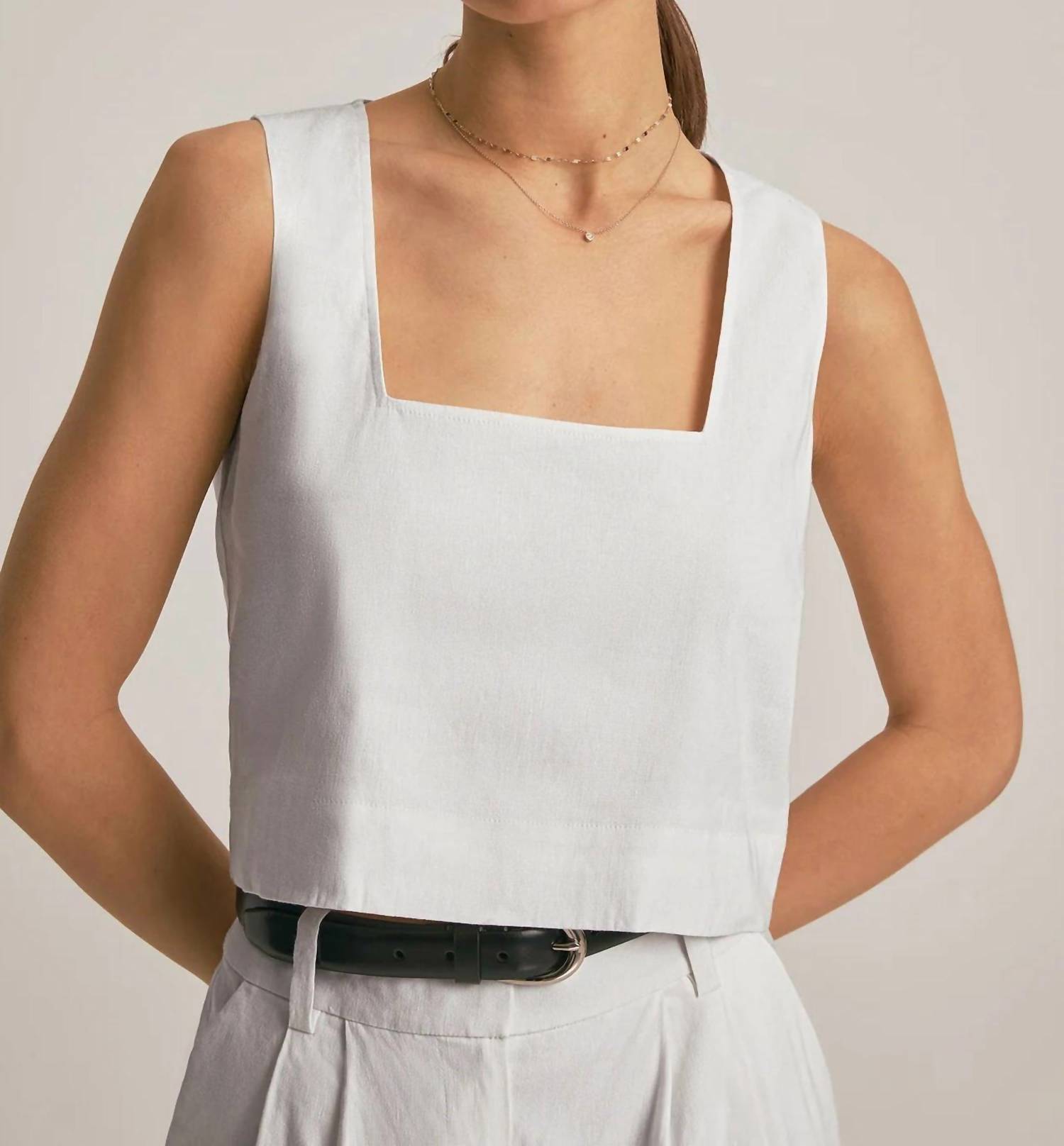 Show a little skin in this cute and casual crop top. Unveil a relaxed summer style with the Abby Top by Favorite Daughter, perfect for effortless elegance. Crafted from a linen blend with 55% linen, 42% viscose, and 3% elastane, this sleeveless top features a chic square neckline. Fully lined with 100% cotton, its slightly cropped design pairs beautifully with your favorite high-waist pants. Care instructions: Dry clean only.