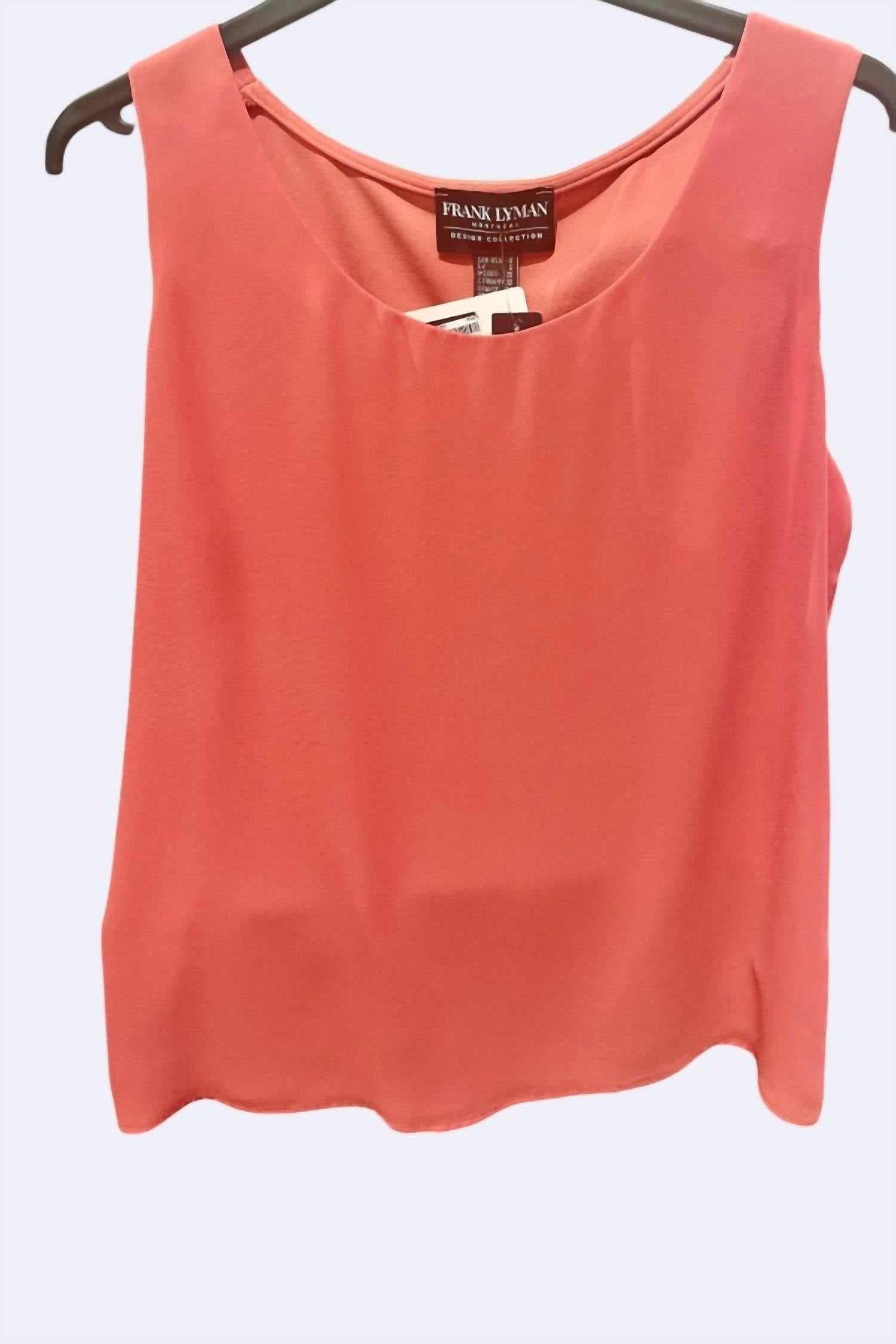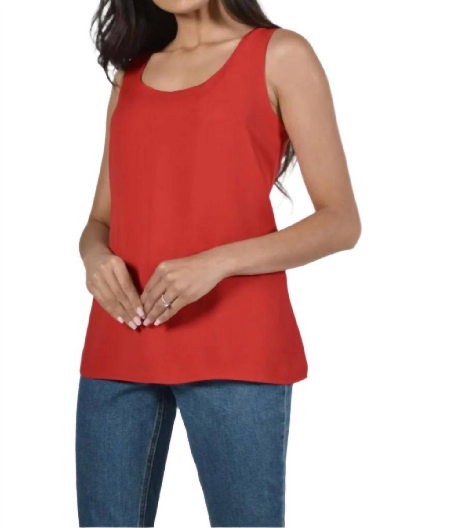 This classic tank top is perfect for layering and cute enough to wear on its own. Discover the Frank Lyman Knit Tank Top, an essential piece for any wardrobe with its striking red hue. This sleeveless top boasts a flattering round neckline and is made from 100% polyester for a smooth finish. Made in Canada with a convenient pull-on closure, it's perfect for standalone wear or as a layering piece. Ideal for spring outings with no fuss about pockets.