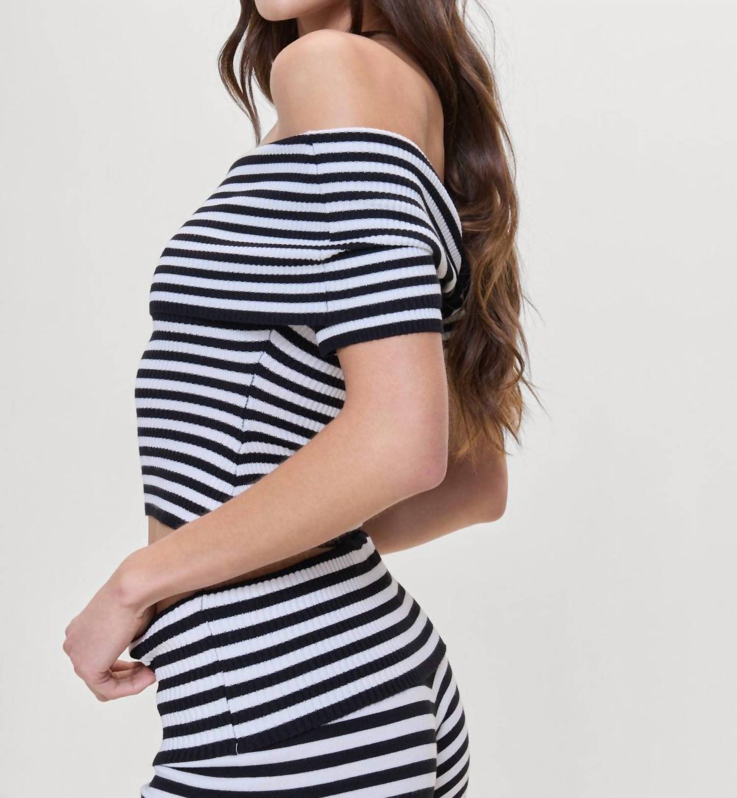 Pair this with your favorite jeans and slides for your next girls night out. Discover effortless summer style with the Lola Strapless Knit Top by Frankies Bikinis, featuring a chic Silhouette Stripe pattern. This off-the-shoulder blouse showcases short sleeves for a casual, feminine touch. Crafted from an 80% Viscose and 20% Nylon blend, its pull-on closure ensures an easy fit. Care for this boho-chic piece with hand washing and line drying to maintain its vibrant look.