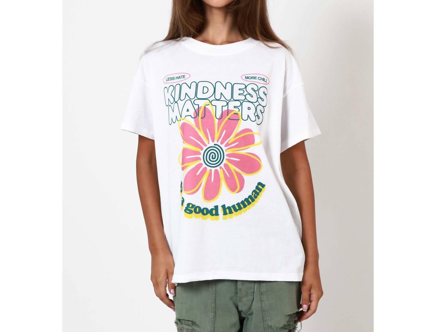 This classic, short sleeve tee will be your go-to staple this season and beyond. Embrace a casual yet stylish look with the Kindness Matters Graphic Tee by Girl Dangerous. This women's tee in classic white features a crewneck design and short sleeves, perfect for summer streetwear or vacation settings. Made from 100% cotton, this pull-on tee offers breathable comfort and a soft feel. Easy to care for, just machine wash and tumble dry for effortless maintenance.