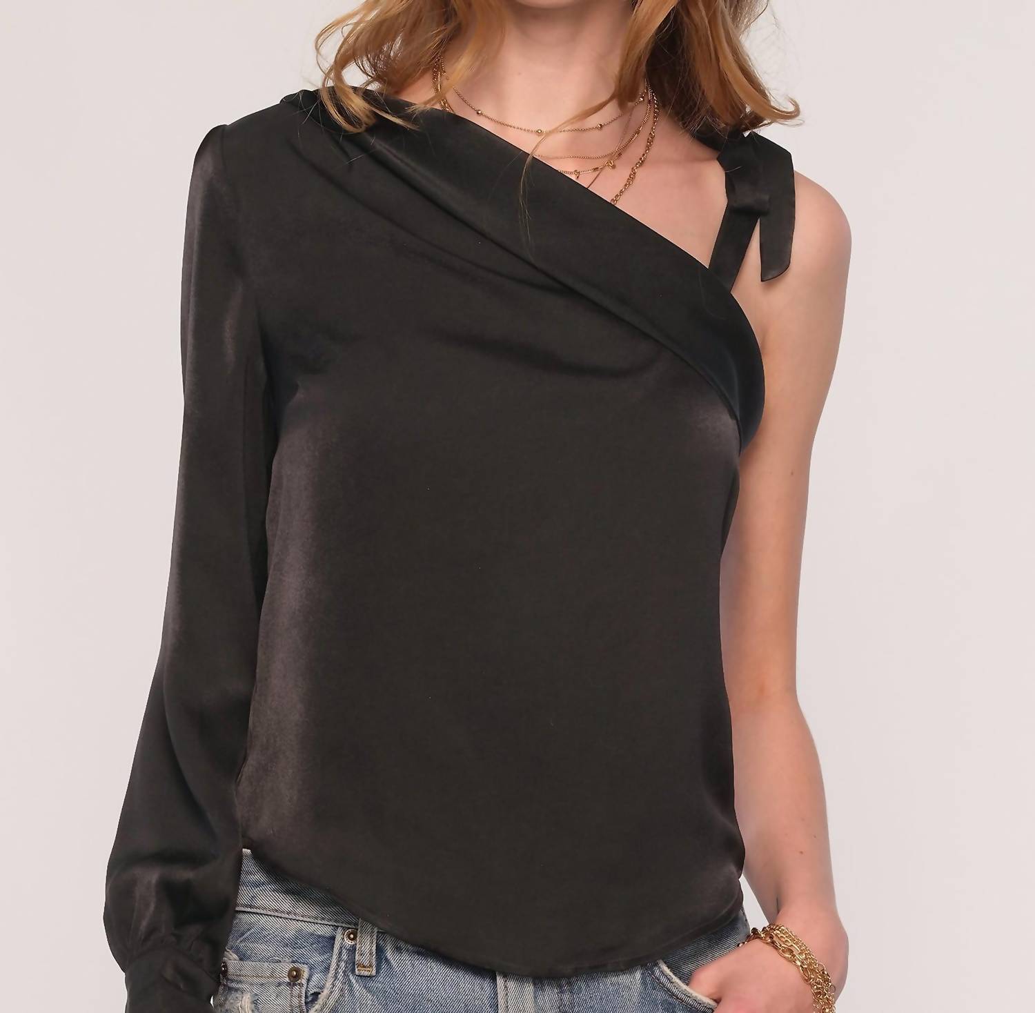 A versatile blouse that works from desk to dinner! Discover understated elegance with the Heartloom Reyna Symmetric Shoulder Top in a sleek black hue. This women's blouse features an alluring off-the-shoulder neckline and long sleeves, perfect for those summer evening events. It's crafted from 100% polyester in a solid pattern, offering a chic and streamlined look. Designed for ease of wear with a pull-on closure, this top embodies the "quiet luxury" trend ideal for any Thanksgiving gathering.