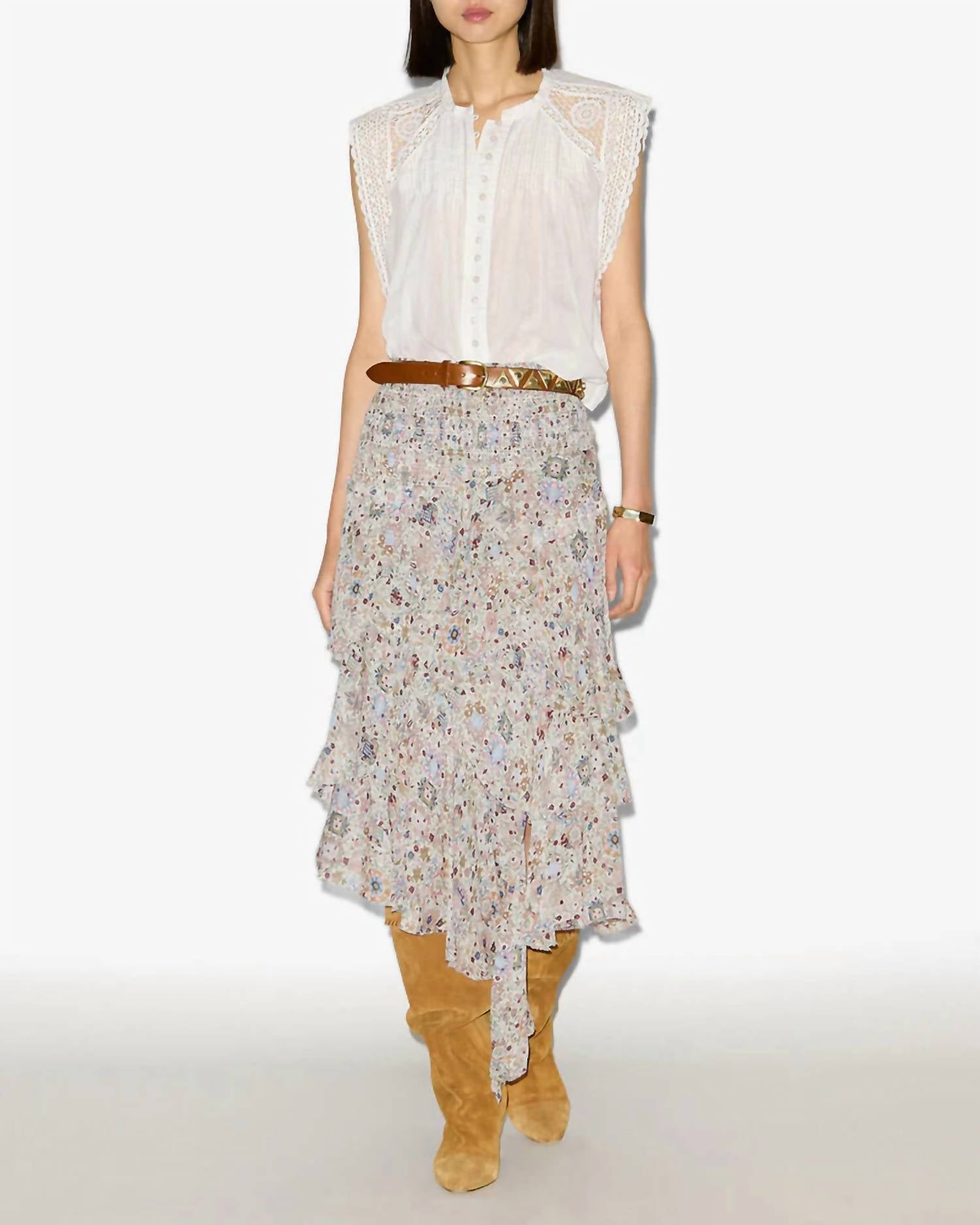 Pair this number with your favorite high-waisted jeans. Elevate your summer wardrobe with the Gresia Top by ISABEL MARANT, a refined piece in timeless white crafted from 100% cotton. This sleeveless top is highlighted by openwork lace shoulder yokes and a round neckline with lace trim, offering a touch of elegance. Designed with a button closure for easy wear and a straight cut with a rounded hem, it's perfect for vacation occasions or as a minimalist statement. Effortless to maintain, simply machine wash when needed.