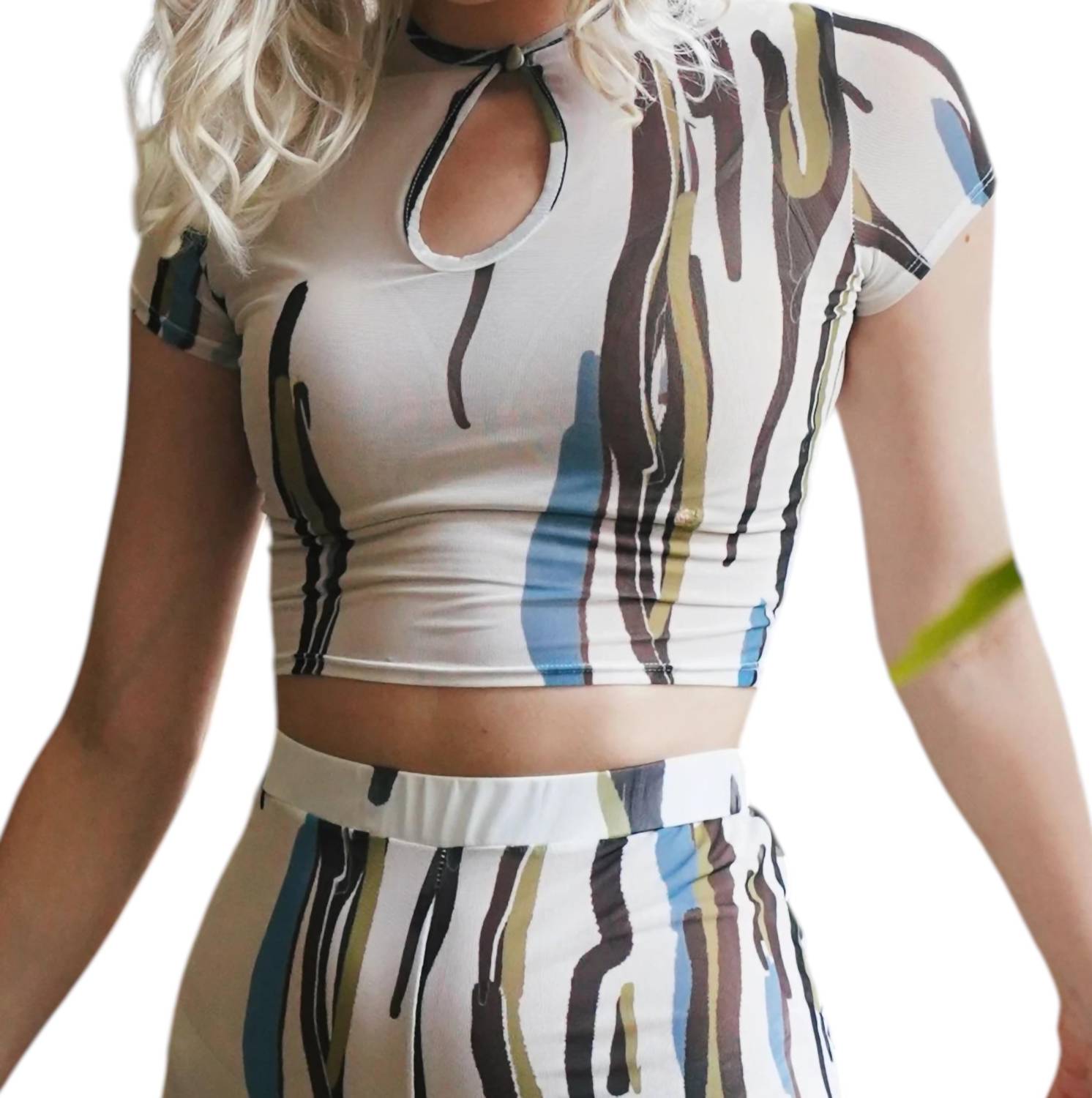 Show a little skin in this cute and casual crop top. Introducing the Chichi Crop Top by Koy & Victoria, a vibrant addition to your summer wardrobe in eye-catching Red Muri Print. This fashionable top features breathable lightweight mesh with short sleeves and a chic cropped length, perfect for embracing those warm beachy days. Made from 90% Polyester and 10% Elastane, it offers both stretch and comfort with a reversible keyhole and button closure for versatile styling. Care for your new favorite piece by machine washing gently and hanging it to line dry, ensuring it stays as vibrant as ever.