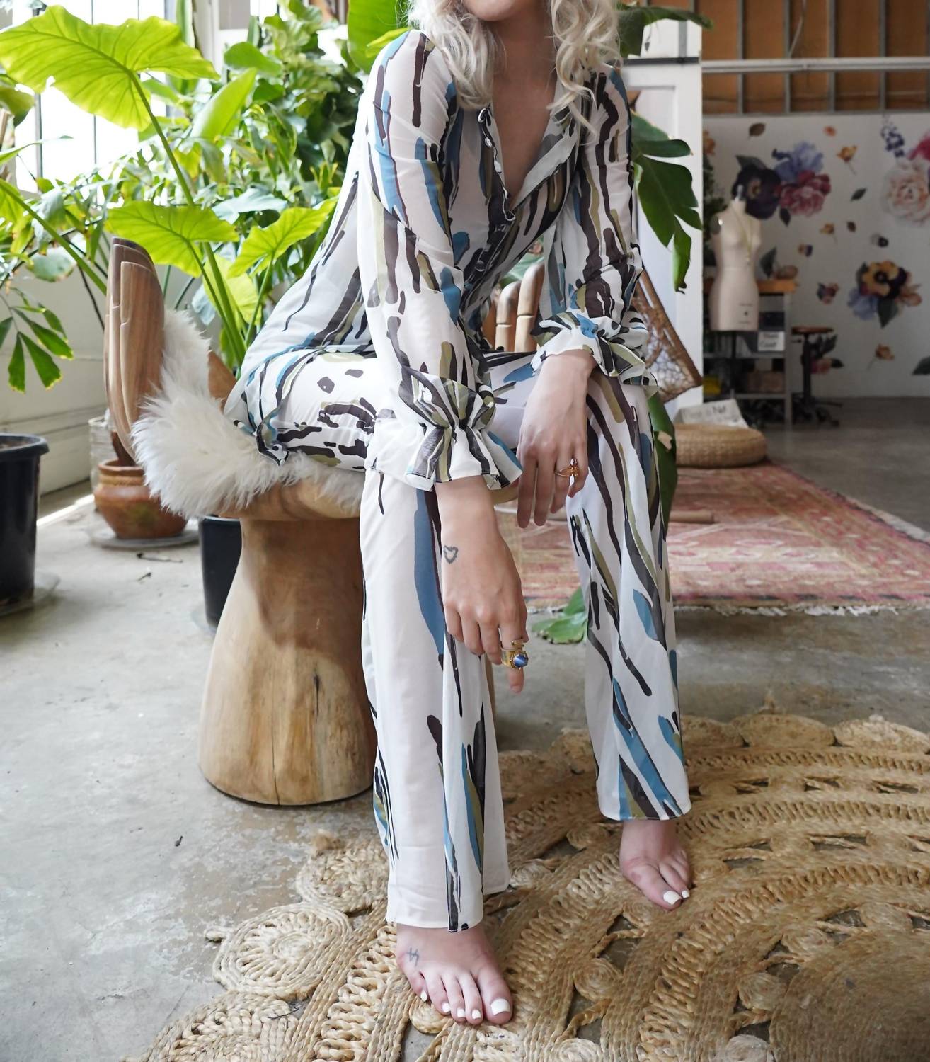 Introducing the Vicky Long Sleeve Top by Koy & Victoria in our distinctive Muri Print, perfect for your summer outings. This lightweight, breathable mesh top features long sleeves and a stylish button-up closure. Designed to meet the mid-thigh, it's made from 90% Polyester and 10% Elastane, enhancing its stretchy feel. Care for this eye-catching piece involves a gentle machine wash and line drying, making it both convenient and stylish for those hot, beachy days.