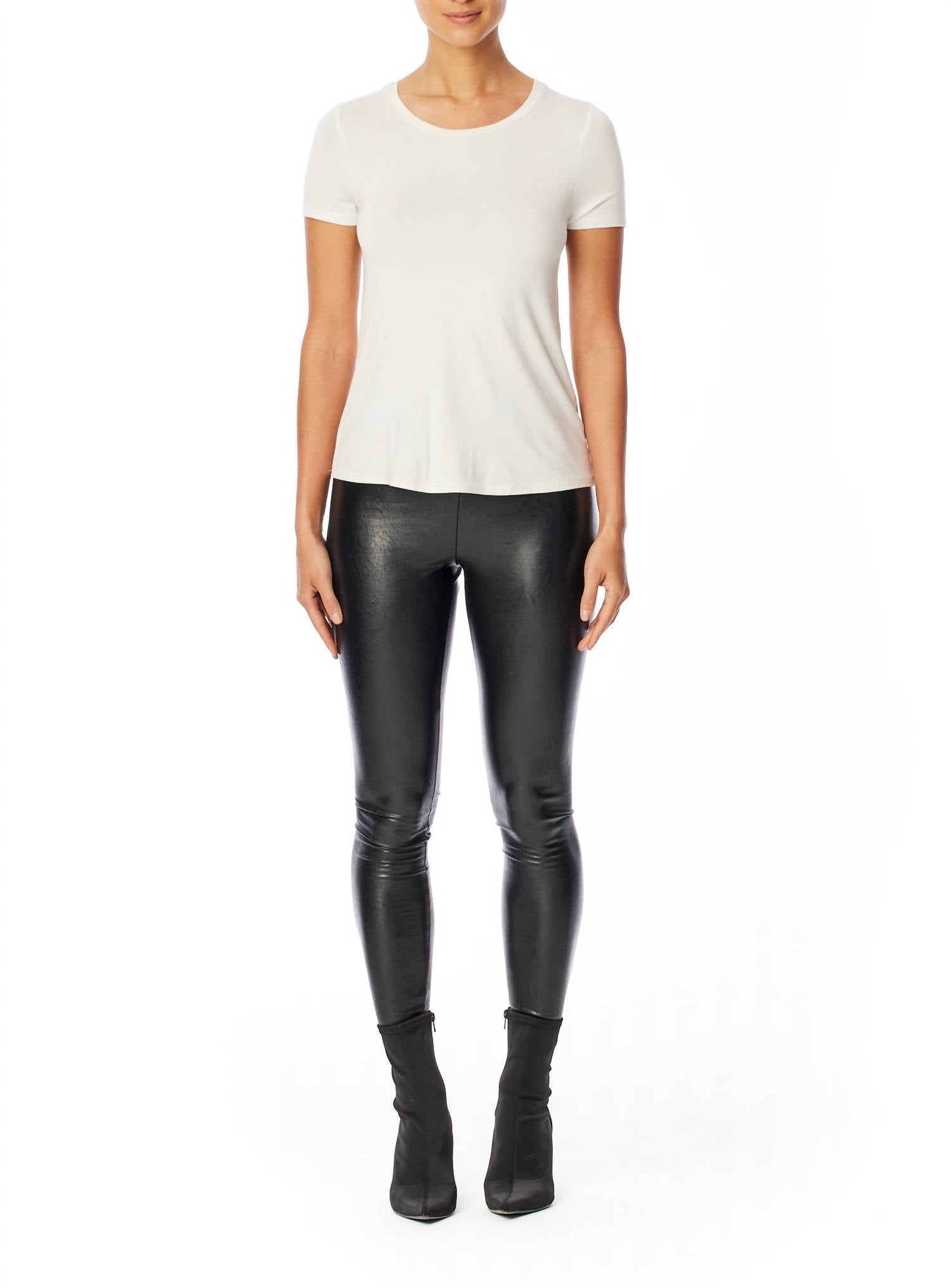 The short sleeve tee you'll want in every color. Introducing the Polly Crew T-Shirt by LBLC THE LABEL, a must-have for any wardrobe in crisp white. Crafted with short sleeves for casual elegance, this tee is made from a blend of 65% Rayon, 30% Modal, and 5% Spandex, ensuring a soft and comfortable fit. Perfectly designed to hip length with a pull-on closure, it features a classic crew neck that's both flattering and chic. Care instructions include hand washing in cold water, avoiding bleach, line drying, and ironing at a low heat for maintenance. Model is 5'11" and wears a size small.