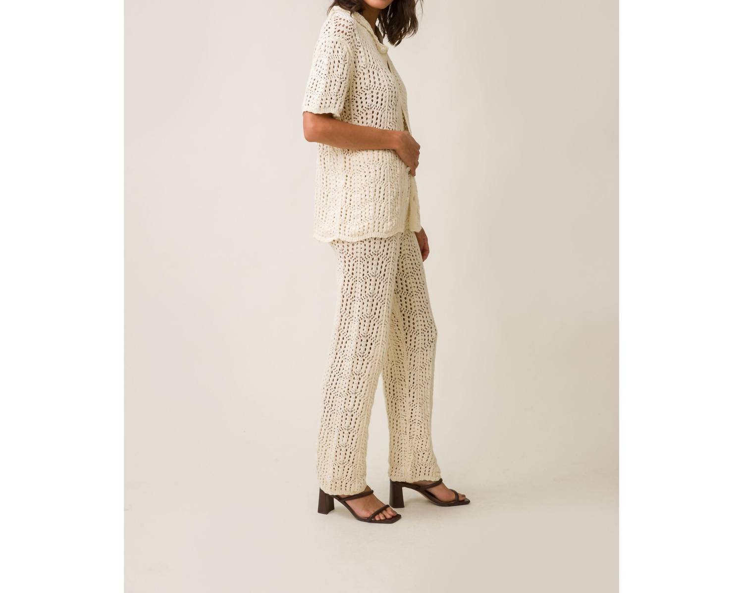 Pair this with your favorite jeans and slides for your next girls night out. Introducing the Poppie Crochet Blouse by Line and Dot, a chic addition to your summer wardrobe. This textured blouse in taupe features short sleeves and a collar, offering a breezy yet sophisticated vibe. Made from 100% Cotton with a button closure, the blouse measures 22.75 inches in length and is perfect for a beach day. For best results, dry clean only.