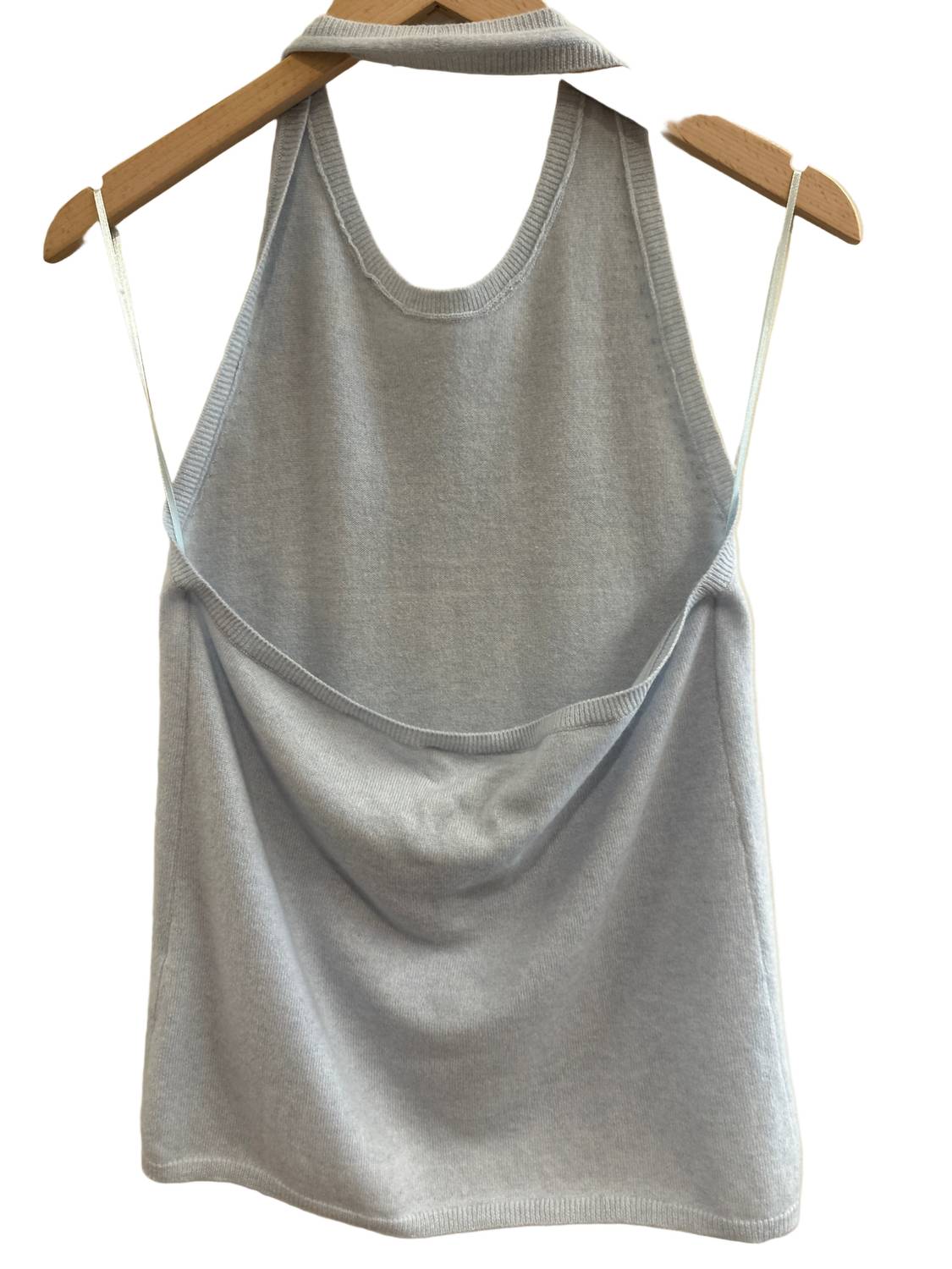 A timeless blouse that will never go out of style. Discover the Women's Florencia Top by LISA YANG, an elegant option in a captivating Horizon Blue shade for chic summer occasions. This halter neck blouse features a stylish open back design, perfect for cocktail parties. Made from luxurious 100% cashmere, it promises both comfort and refinement. Closure: Pull on. Care: Hand wash and lay flat to dry.