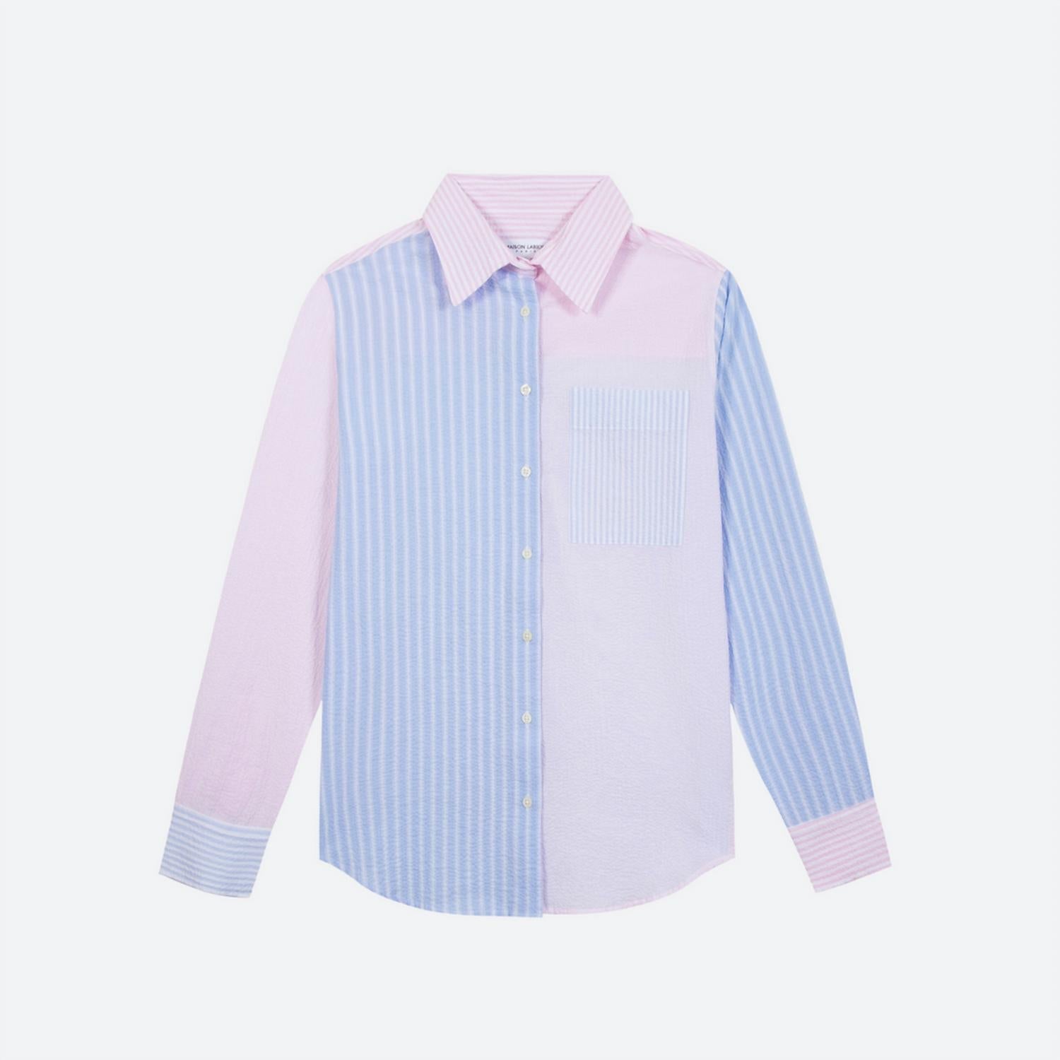 A classic button down shirt that will never go out of style. Discover the MAISON LABICHE Loutil Button Down, a statement piece in a multi-striped design perfect for any summer vacation. This women’s shirt features long sleeves and a classic collar, complete with the brand's iconic embroidery and a chest pocket. Made with a cotton blend (99% cotton, 1% elastane), it boasts a comfortable fit. Closure: Button closure. Crafted with Spanish weaving quality in mind.