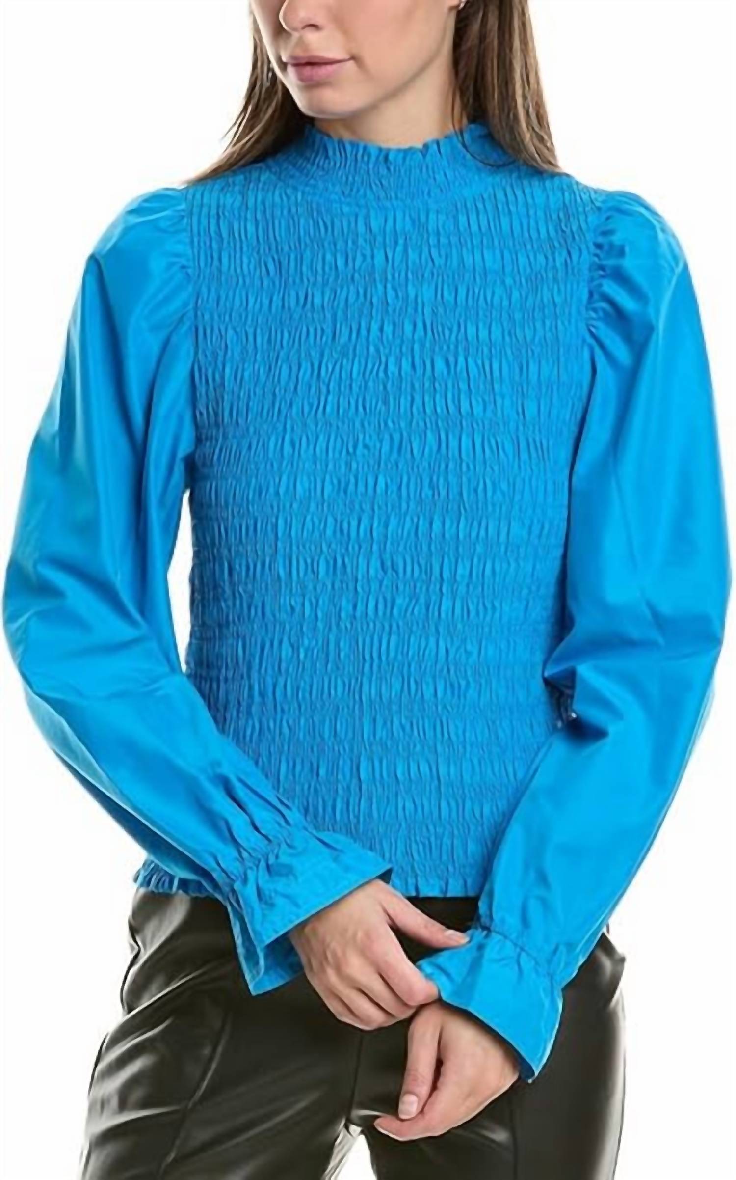 Pair this with your favorite jeans and slides for your next girls night out.This top measures approximately 21.5 inches from shoulder to hem. It features a smocked design and elasticized flounce cuffs, with a center back zipper. Made from 100% polyester and imported.