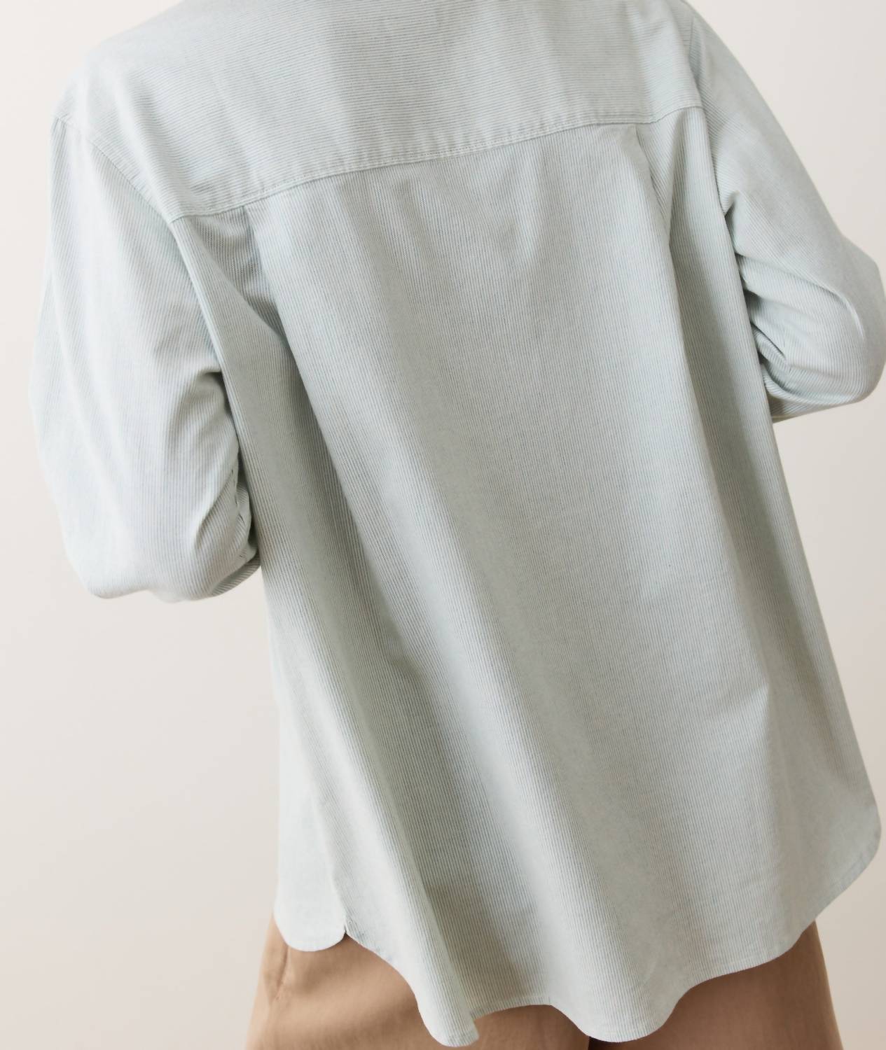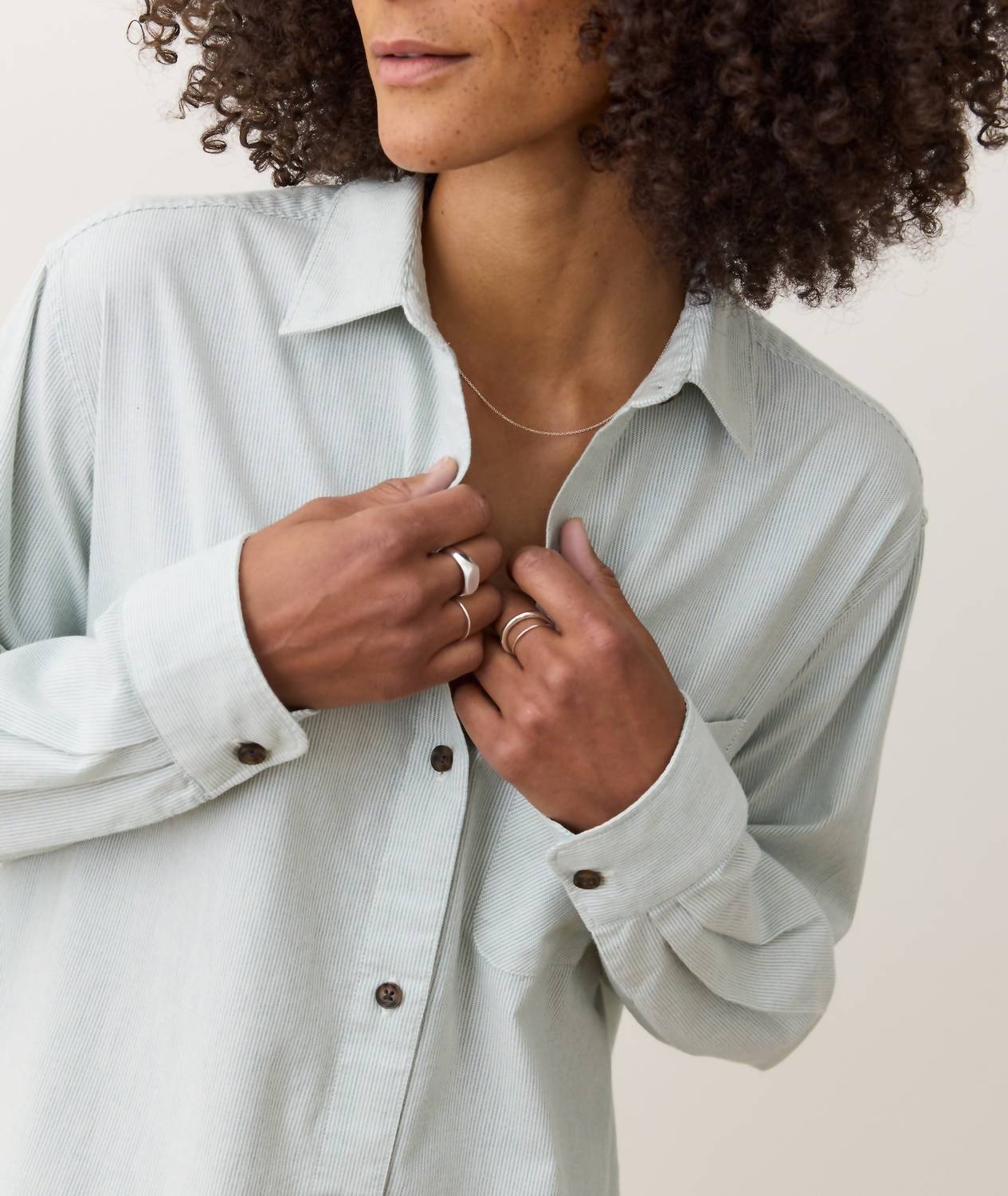 A classic button down shirt that will never go out of style. The Jane Relaxed California Oxford Shirt by Marine Layer offers a perfect blend of style and comfort with its long sleeves and classic button closure. Crafted from a cotton blend and featuring a green stripe pattern, this shirt offers the softness of a cotton-rich composition, enhanced by 2% spandex. Responsibly made in China, it boasts a collar neckline and a relaxed fit that feels luxuriously soft. For care, simply machine wash cold and tumble dry low, making it a practical yet stylish choice for those warm summer vacation days.