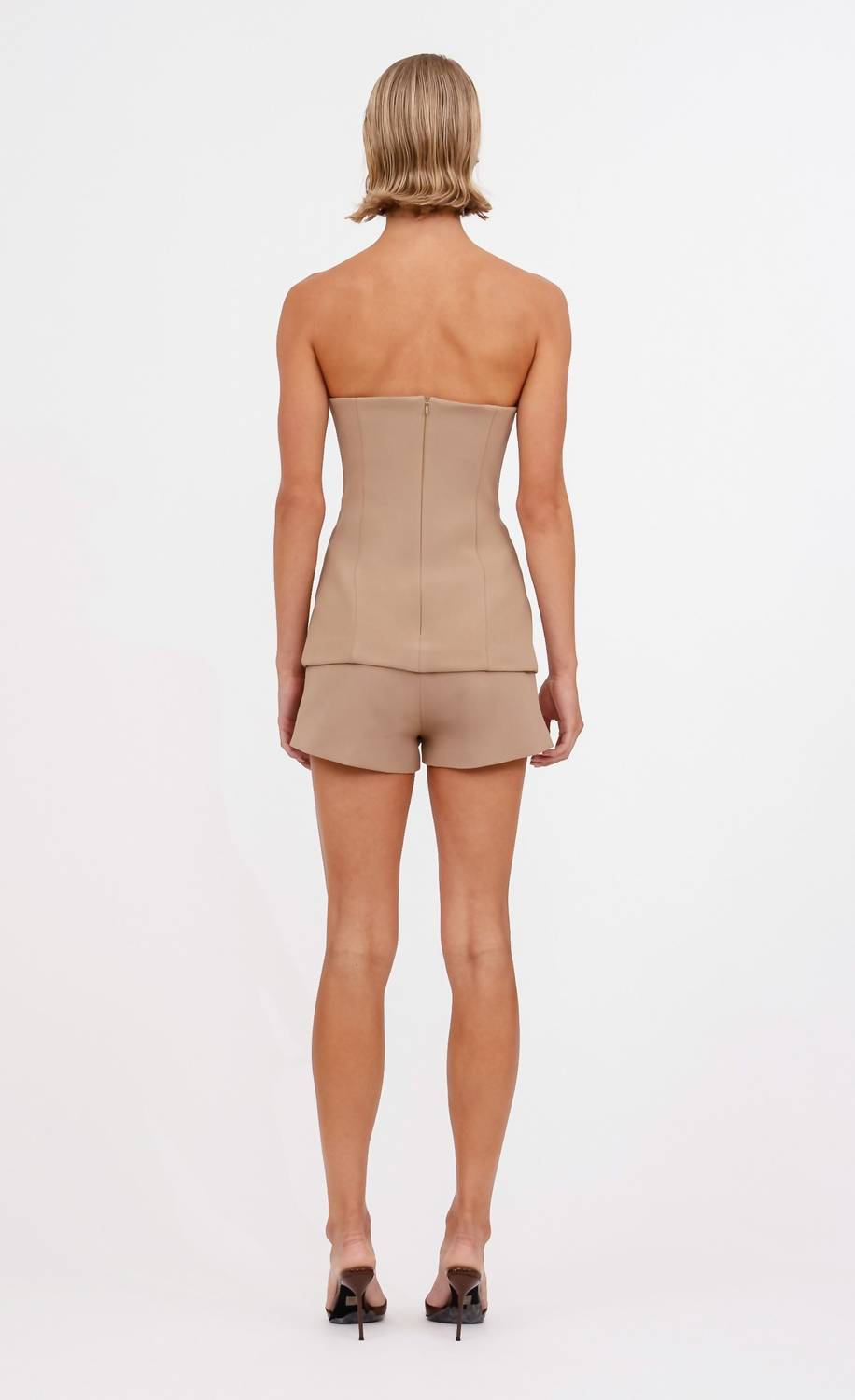 A versatile blouse that works from desk to dinner! Embrace modern elegance with the Liz Strapless Top by Nonchalant Label, an essential addition for any closet. This patterned bustier-style top in camel features raw fringe detailing, adding a touch of edginess to your summer ensemble. With a convenient zip closure, this piece offers a seamless, sleek fit perfect for dinner parties or Thanksgiving gatherings. Designed for women who appreciate minimalist trends, it boasts an off-the-shoulder neckline that complements any look.