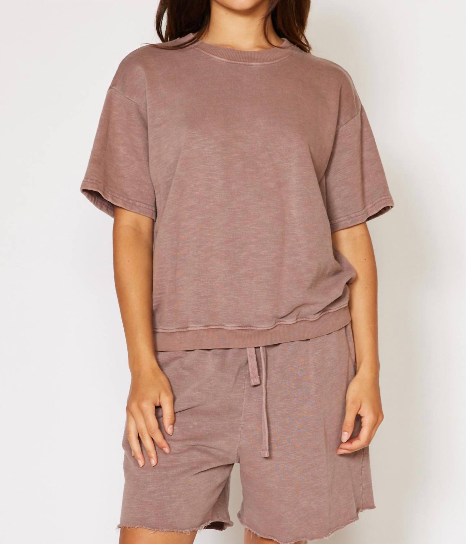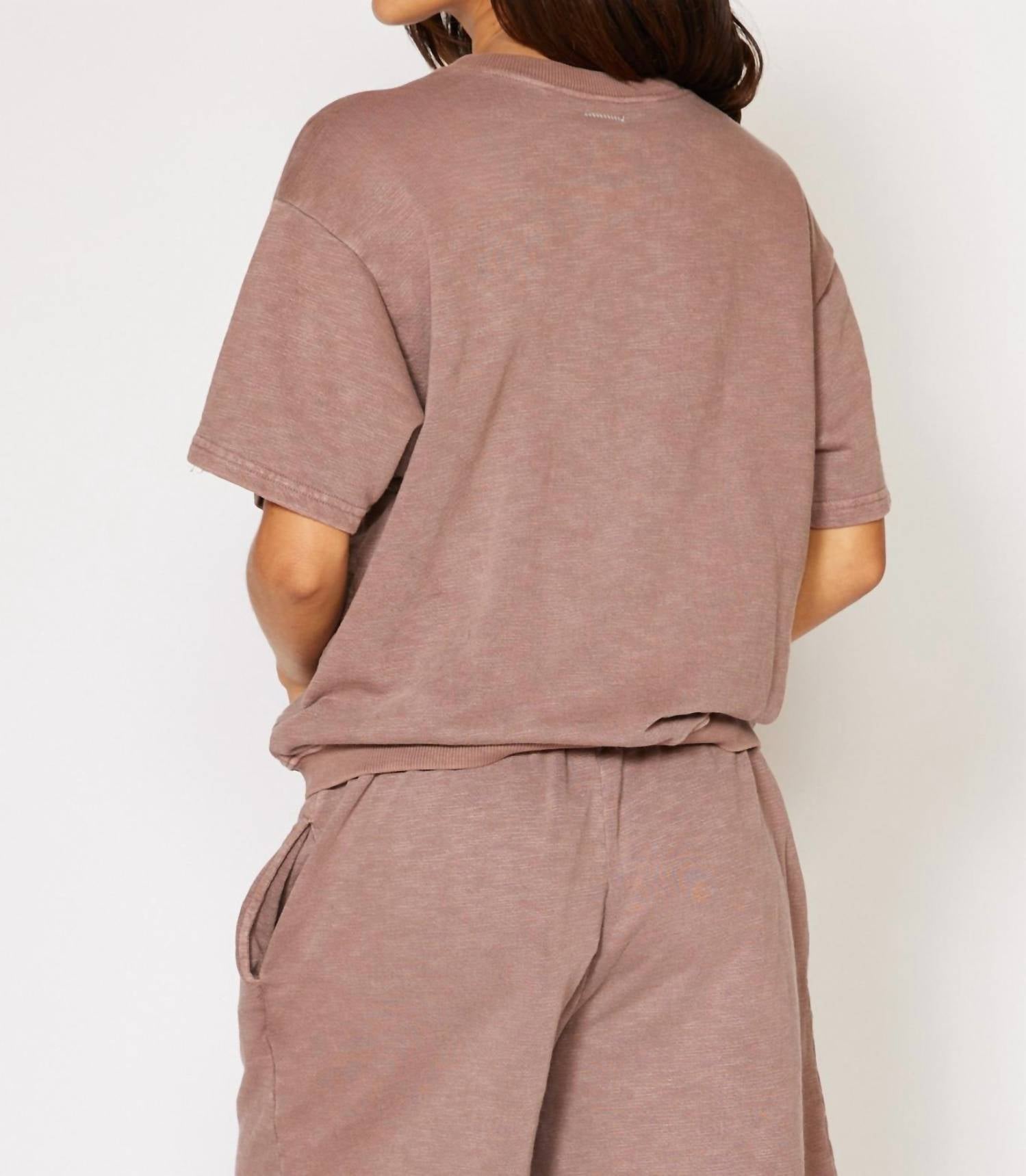 The short sleeve tee you'll want in every color. The Harmony Short Sleeve Crewneck by People of Leisure in Desert Rose is designed for effortless comfort and style. Crafted from 100% Organic Cotton, this tee is ultra-soft and ethically made in Los Angeles. The pull-on style features a classic crewneck and is perfect for a casual day out or pairing with the Harmony Short for a cozy ensemble. It's easy to care for with machine wash cold, warm and tumble dry on low.