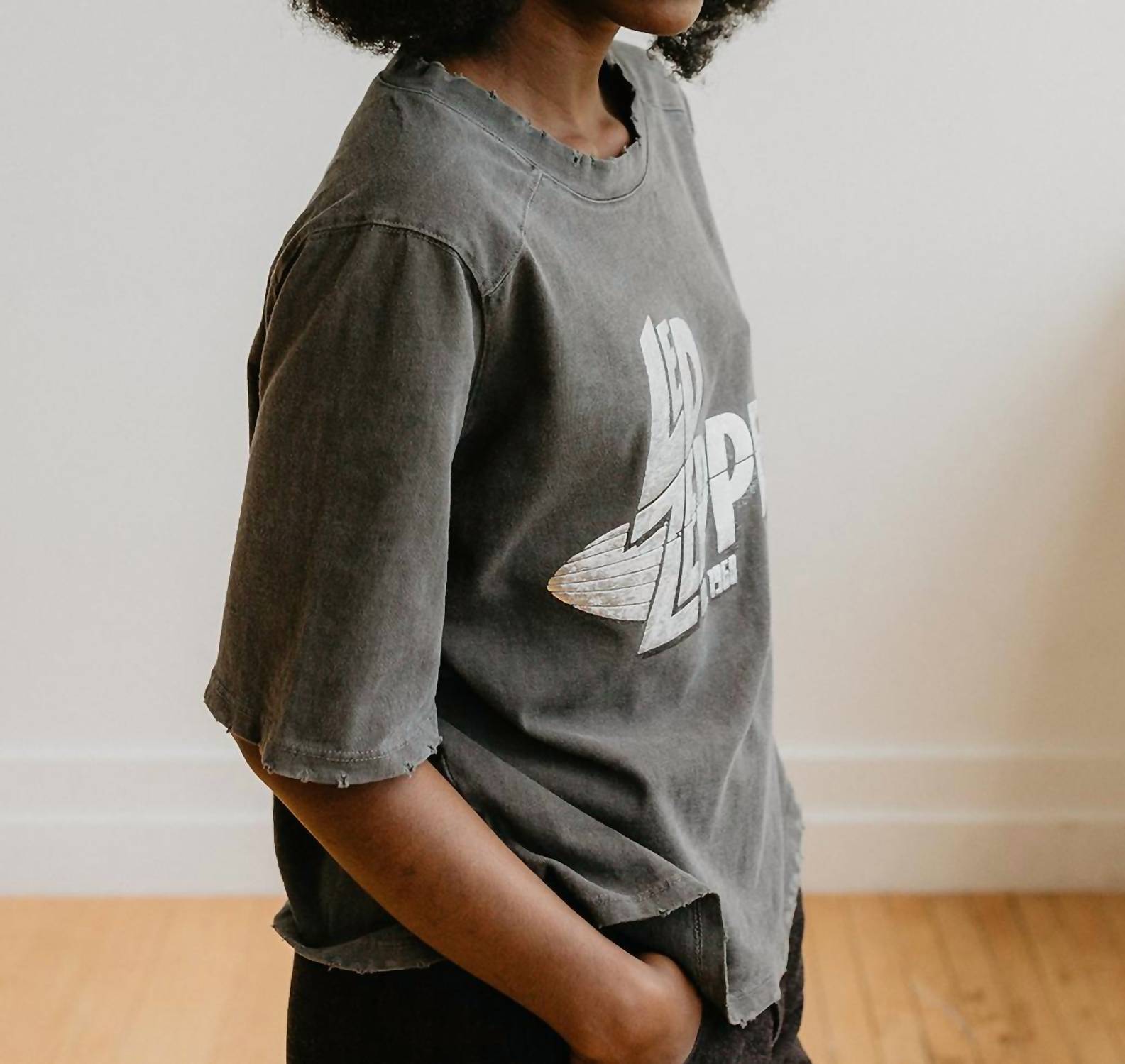 The short sleeve tee you'll want in every color. Celebrate rock history with the Led Zeppelin Mothership 1968 Tee by People of Leisure. Made from 100% organic cotton, this short sleeve crewneck tee showcases a striking metallic puff print that nods to the band's iconic roots. Ethically crafted in Los Angeles, its vintage black hue pairs effortlessly with any style. Designed for easy wear with a pull-on closure, it offers easy care with machine washing and low tumble drying. Available in sizes S-XL for a perfect fit.