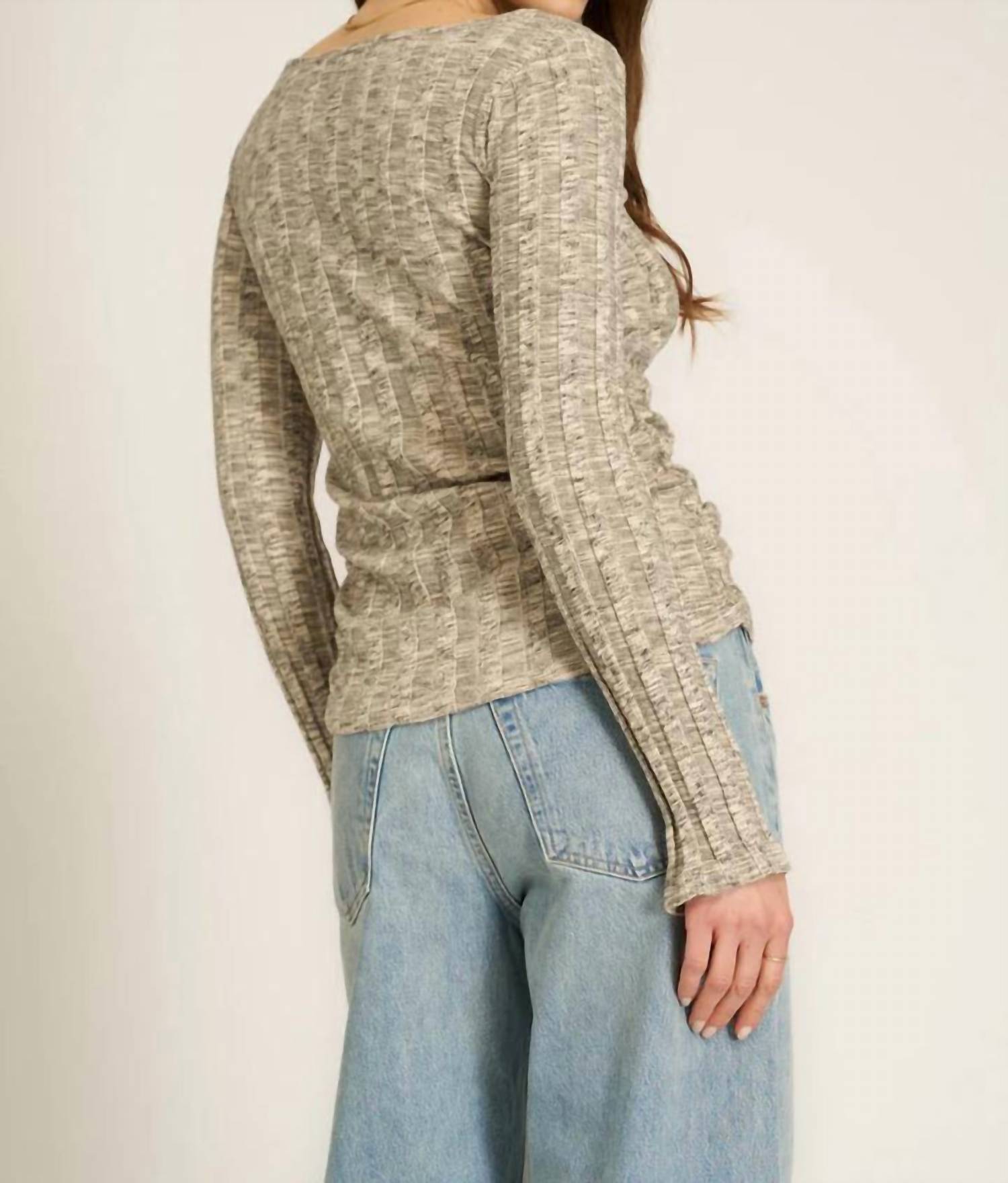 The perfect long sleeve tee that goes with just about anything. Introducing the Sanna Boat Neck Rib Long Sleeve Top by PROJECT SOCIAL T, a chic addition to your spring wardrobe. This long-sleeve top in a textured Mother of Pearl hue offers a sleek, fitted silhouette with a slight sleeve flare at the wrist for added flair. Crafted from a comfortable cotton blend (75% Cotton, 25% Polyester), this pull-on versatile piece is perfect for vacation wear. Care for it with ease: Machine wash and lay flat to dry.