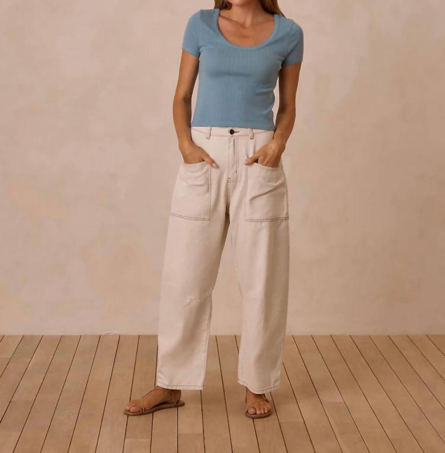 Introducing the Rylee & Cru Women Pointelle Tee, a stylish addition to your summer wardrobe in a deep 'ocean' hue. This short sleeve tee is crafted from 100% cotton, featuring a playful scoop neck and textured design with scalloped trim for added detail. Designed as a pull-on style, it ensures comfort and ease for back-to-school or Easter occasions. Care is a breeze with machine wash cold and tumble dry low instructions, making it as practical as it is pretty.