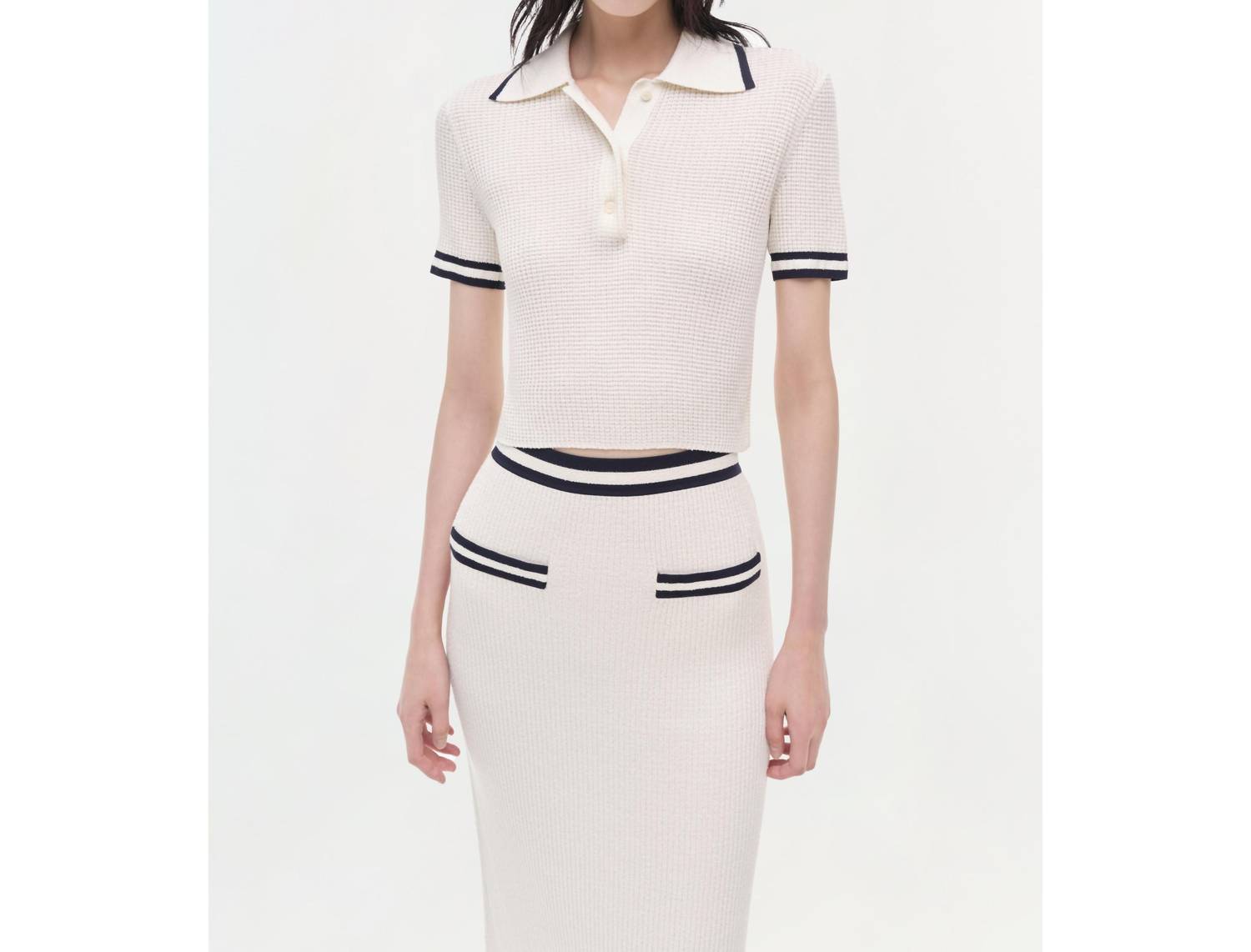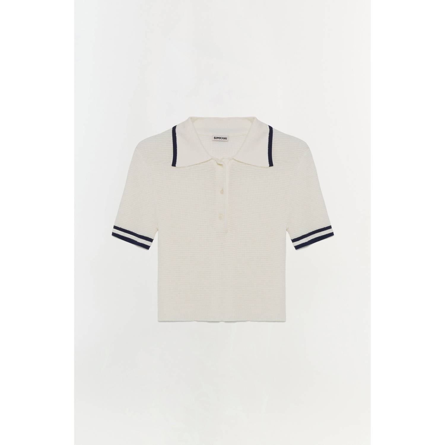 Experience the refined elegance of the Whitten Polo by SIMKHAI, designed for sophisticated style. This short-sleeve top is crafted from a luxurious blend of 44% Rayon, 28% Cotton, 27% Nylon, and 1% Spandex, with a smooth micro cotton bouclé texture. The polo features a classic collar and a button closure, perfect for a minimalist look in Sorbet Multi. Imported for quality assurance, this piece requires dry cleaning to maintain its polished appearance.