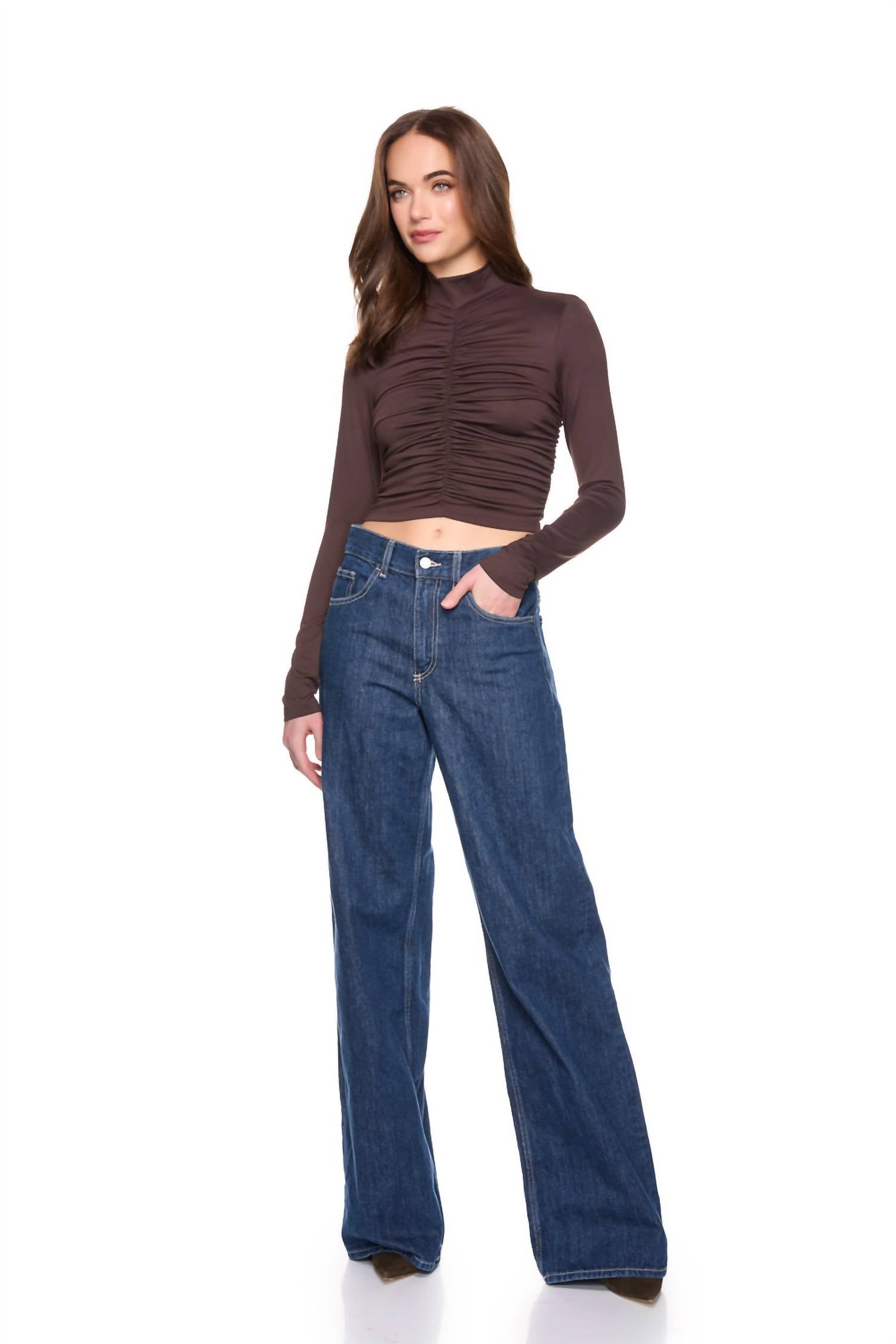 Susana Monaco - Mock Neck Gathered Long Sleeve Top